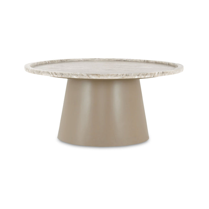 Elunara Coffee Table, Round Antique White Marble Tray Top, Pedestal Iron Base, Compact Size, White