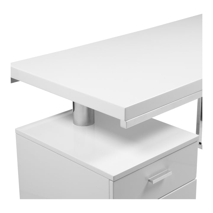 Elysia - Lacquered MDF with Brushed Stainless Steel Frame Desk in White