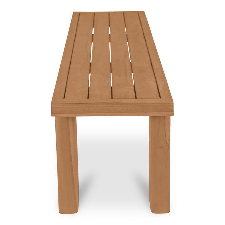 Emeren Dining Bench, Rectangular Solid Teak Slatted Seat, Seats 3, Natural Finish