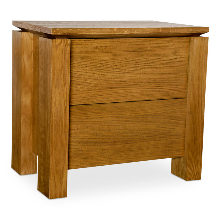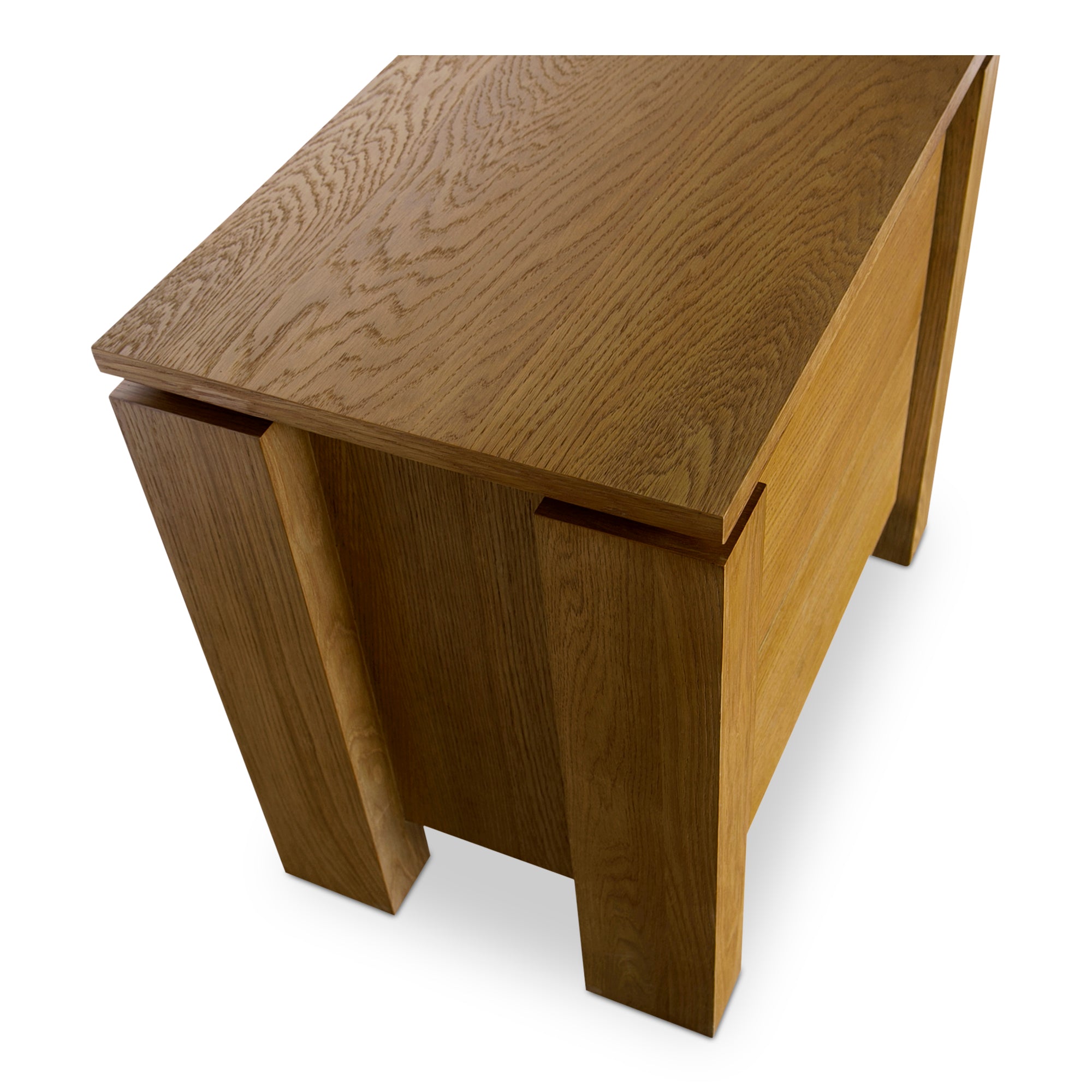 Emeric Nightstand, Solid Oak Legs, Oak Veneer Drawers, Floating Undercut Top, 2 Drawers, Country Oak