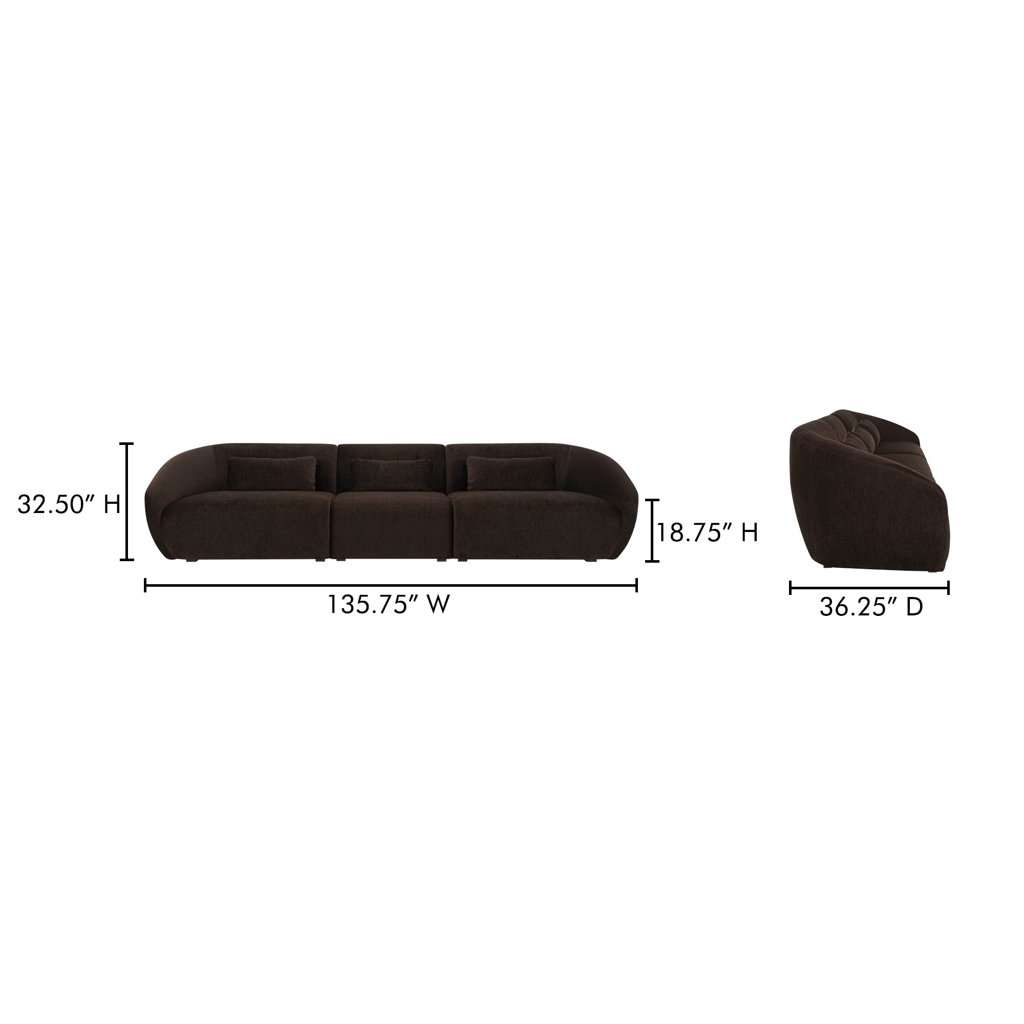 Emery Modular Sofa, 3-Seater, Contemporary Design, Espresso Brown Upholstery