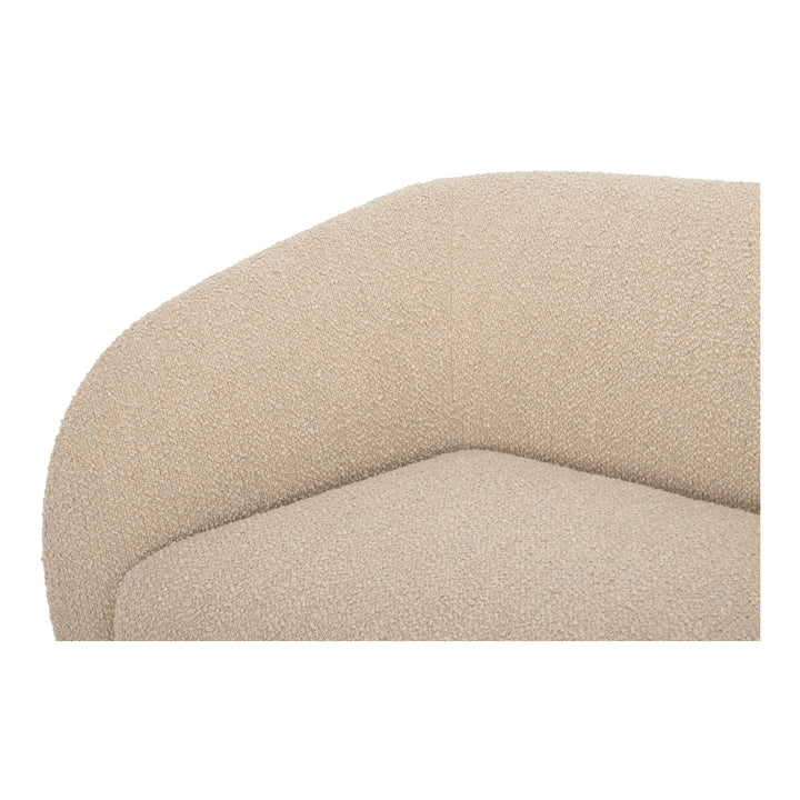 The Nadaal Studios Eowyn Right-Facing Sectional Sofa in Beige Bouclé is a striking yet inviting statement piece, blending sculptural elegance with plush comfort. Upholstered in exaggerated boucle fabric, this sectional introduces a warm, textured look that complements a range of decor styles. Designed with a gracefully curved back and a plush fixed bench seat, it provides both aesthetic appeal and superior comfort. The solid beech and plywood frame, supported by solid rubberwood legs, ensures lasting durability. Featuring foam and fiber-filled cushions with an S-frame and webbing support system, this sectional is built for resilient yet cozy lounging. Certified by OEKO-TEX Standard 100 and boasting a 100,000 rub count, this sofa is designed for sustainability and durability.