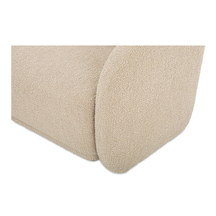 The Nadaal Studios Eowyn Sofa blends modern sophistication with a vintage-inspired aesthetic. This 3-seater sofa features an exaggerated curved fixed-back design, creating a striking yet inviting silhouette. Upholstered in luxurious beige bouclé fabric, this sofa offers a soft, textured feel that enhances the warmth and depth of your space. The plush foam and fiber-filled seat and back cushions provide superior comfort, while the solid beech and plywood frame, supported by sturdy solid rubberwood legs, ensures lasting durability. Whether used as a statement piece or paired with complementary décor, the Eowyn Sofa is designed to bring timeless elegance and everyday comfort into your home.