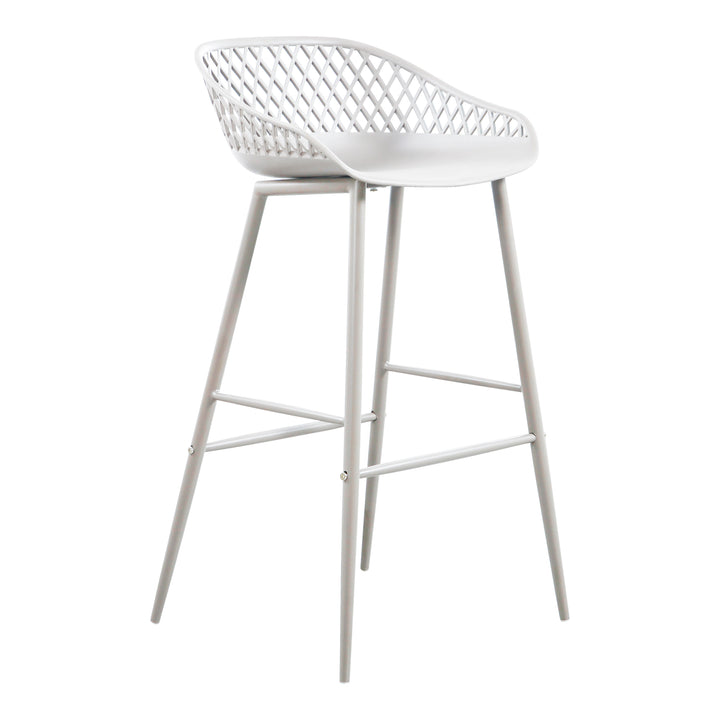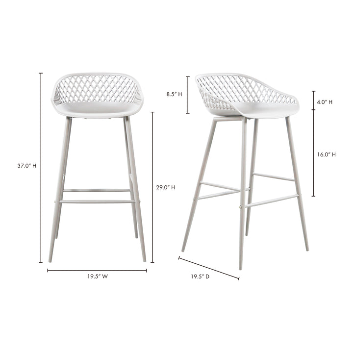The NADAAL STUDIOS Florence White Barstool embodies elegance with a purpose, combining pristine white color and robust functionality for your outdoor settings. Designed for modern lifestyles, this barstool features a sleek white polypropylene build and strong powder-coated metal legs, ensuring durability against the elements. Whether enhancing a poolside bar or a chic patio dining area, the Florence barstool offers superior comfort and a stylish design that adapts seamlessly to any outdoor decor. Its low-rise back and footrest provide ergonomic support for extended periods, making every moment outdoors as comfortable as it is stylish.