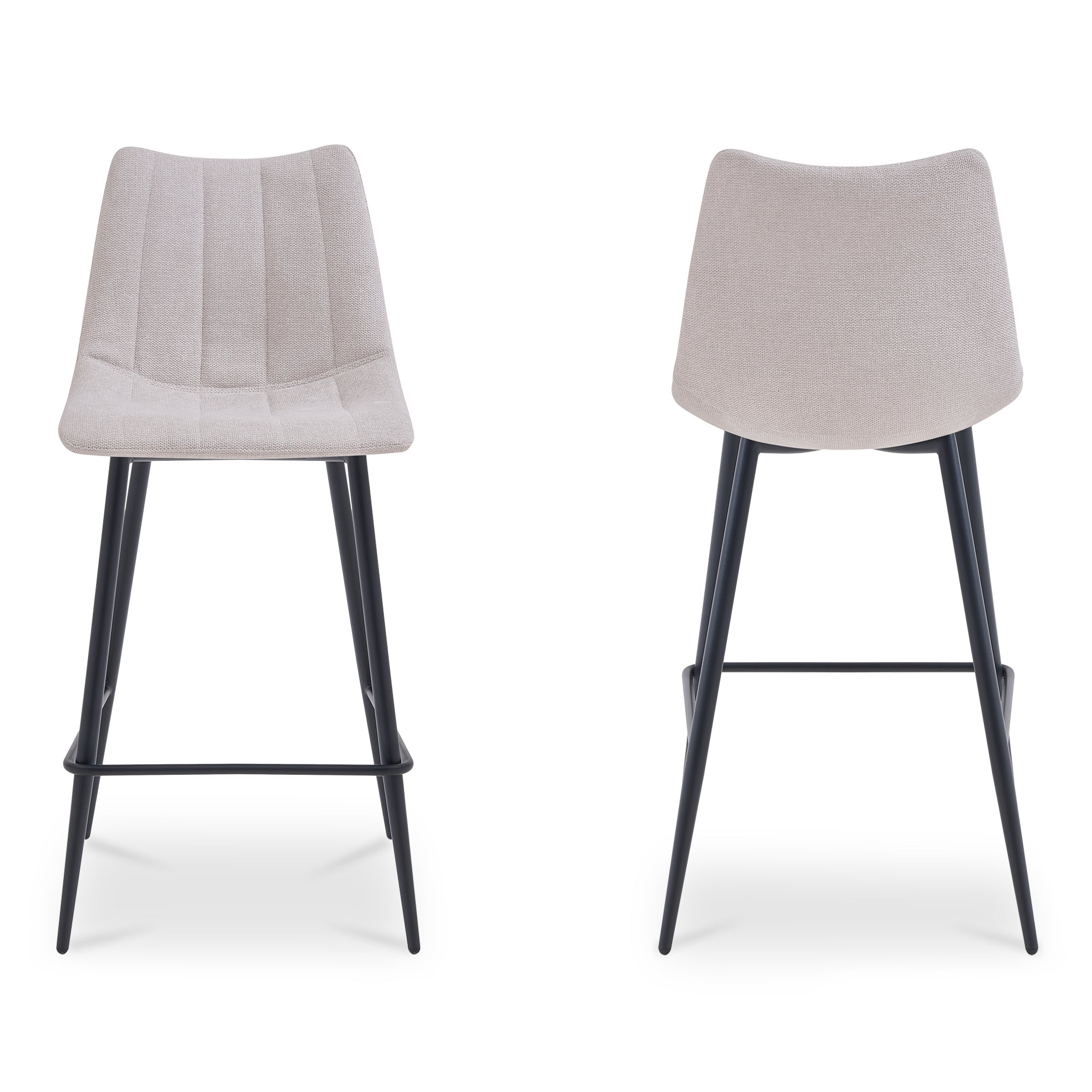 Florian Bar Stool, Vertical Stitch Seat Performance Fabric, Black Steel Legs, Beige