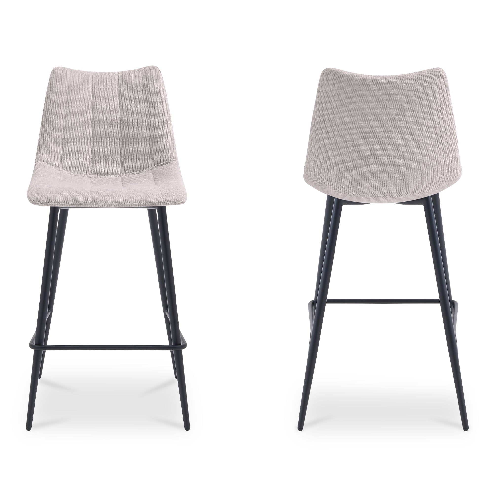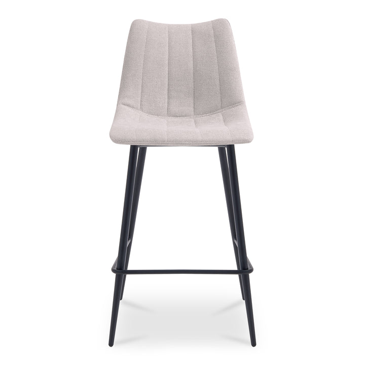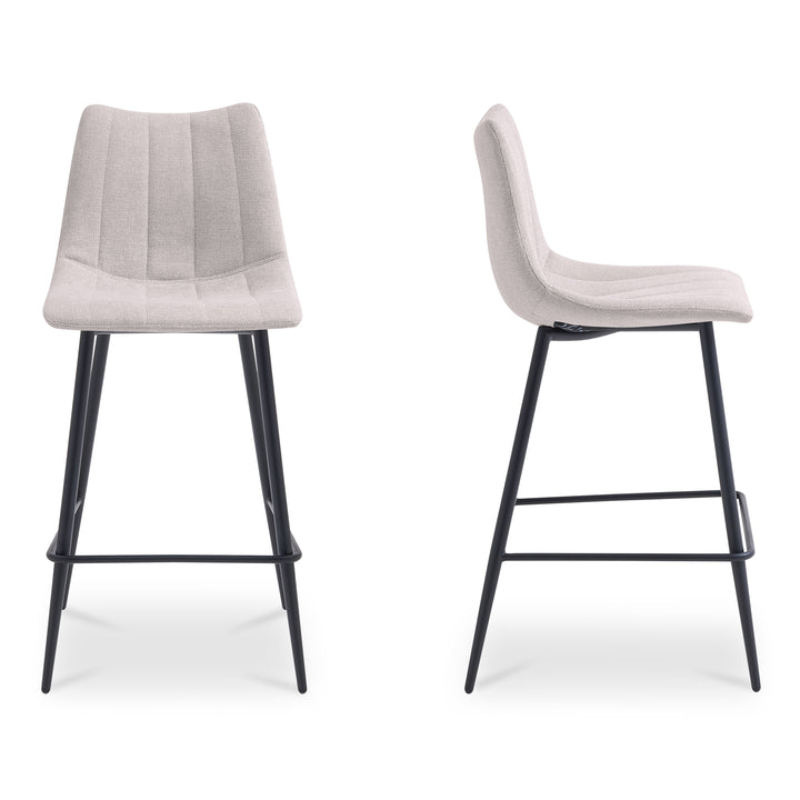 Designed for everyday rhythm, Florian pairs a softly curved counter-height seat in beige performance fabric with slender tapered iron legs. The ergonomic silhouette supports comfortable sitting while keeping visual lines clean. Tailored detailing and durable materials ensure it stands up to frequent use, making it a natural choice for kitchens and casual dining spaces with a warm, modern point of view.