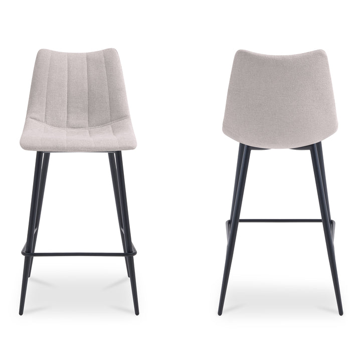 Florian Counter Stool, Curved Seat Performance Fabric, Tapered Iron Legs, Beige