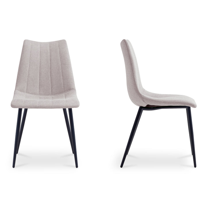 Elevate your dining area with the Florian Dining Chair from Nadaal Studios. Upholstered in a soft beige performance fabric, this chair features vertical stitching for a refined, tailored look. The foam-padded seat sits atop sleek, tapered metal legs, giving the chair a light and modern profile. Designed with everyday living in mind, Florian balances style, comfort, and easy upkeep—perfect for casual meals, dinner parties, or multi-purpose spaces.