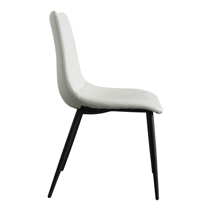 Transform your dining area with the elegant and sophisticated NADAAL STUDIOS Florian Dining Chair, a piece that embodies modern minimalism and luxurious comfort. Upholstered in smooth ivory vegan leather, this chair brings a fresh, contemporary touch to your dining room. The clean vertical stitching adds a subtle, refined texture, while the soft, curved seat offers an inviting space for you to enjoy meals in comfort. Its sleek metal legs provide a strong and sturdy foundation, ensuring that this chair will be a lasting addition to your home. Designed to blend seamlessly into any interior, the ivory color brightens up your space, making it feel open and inviting. Whether your décor leans towards modern, transitional, or even Scandinavian, the Florian Dining Chair adapts effortlessly to your style. It's more than just a dining chair—it's a statement piece that combines beauty with practicality. With its durable vegan leather upholstery and solid metal construction, this chair is made for those who appreciate both design and functionality in their furniture.
