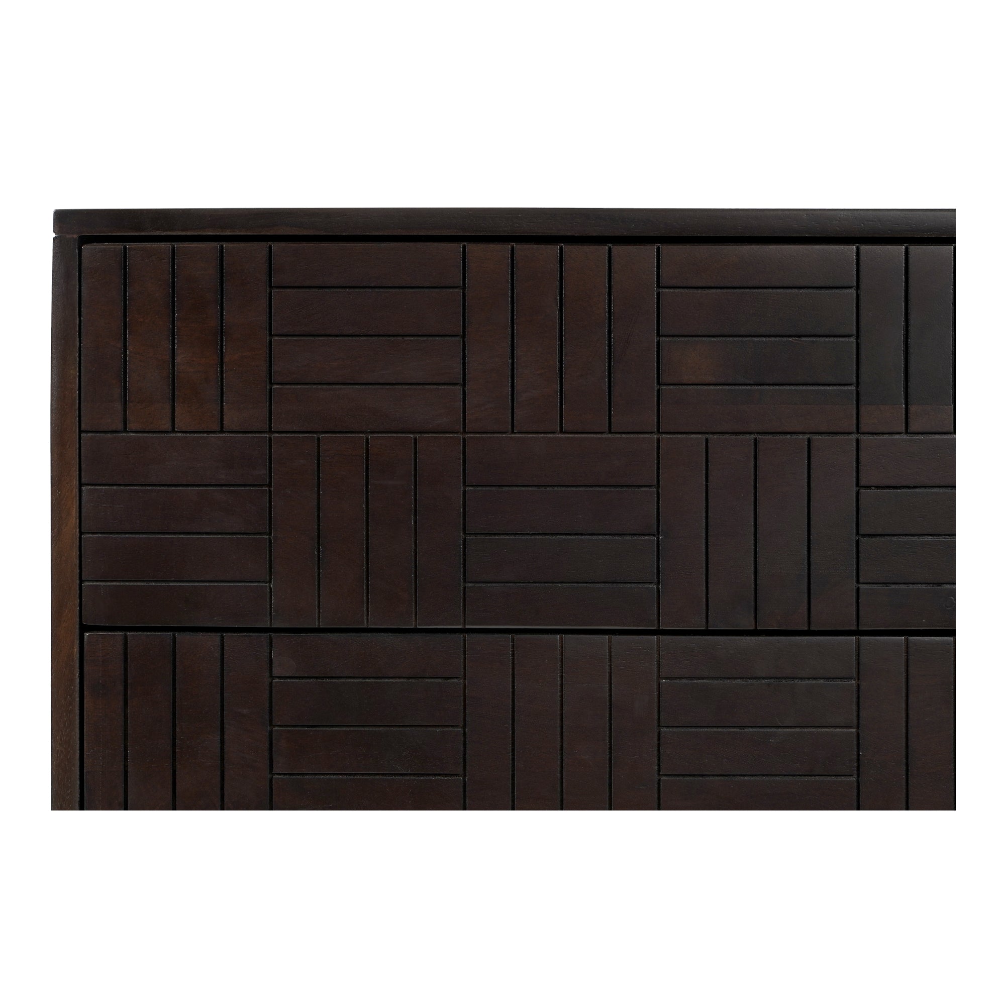 Experience the timeless appeal of mid-century modern design with the Frankie Dresser by Nadaal Studios. This beautifully crafted dresser is made from solid mango wood, a material prized for its strength and stunning grain patterns. The dark brown finish enhances the natural variations in the wood, creating a piece that is both functional and visually striking. The Frankie Dresser features felt-lined drawers with side mount ball bearing metal glides and safety stops, providing smooth and reliable storage for your clothes and accessories. Sustainably sourced from trees that no longer produce fruit, the solid mango wood used in this dresser is an eco-friendly choice that aligns with your values. Each dresser is unique, with individual wood grain patterns and knots that make every piece one of a kind. Perfect for any bedroom, the Frankie Dresser combines style, storage, and sustainability in a design that will be cherished for years to come.