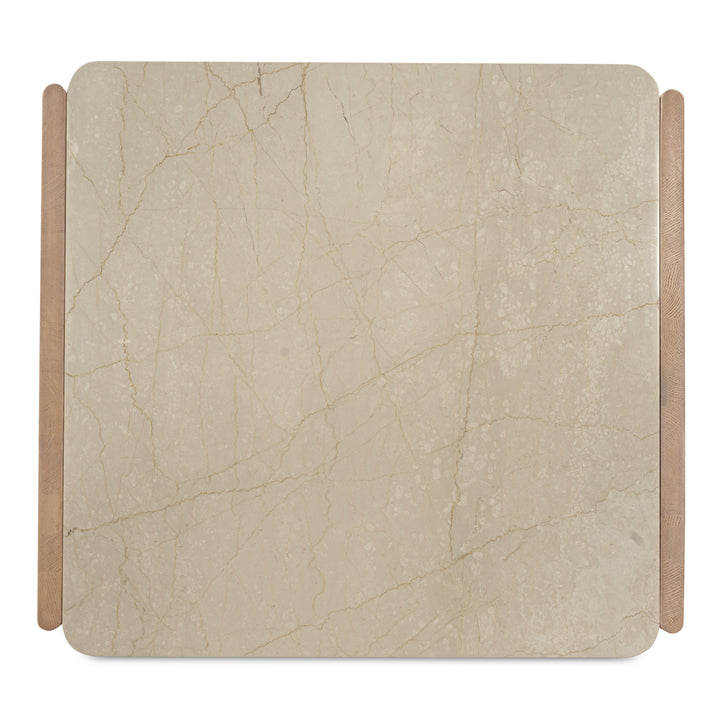 A modern heirloom in the making, the Galatea Coffee Table in Natural is where timeless materials meet sculptural refinement. This round centerpiece features an Italian Botticino marble top, carefully inset into a rounded frame of solid oak. Thick, curved oak legs elevate the silhouette while providing sturdy support and beautiful contrast to the stone surface. Each marble top displays its own natural tone and veining, making every table entirely unique. Designed to anchor living spaces with presence and poise, Galatea is the perfect marriage of warmth, texture, and elegance.