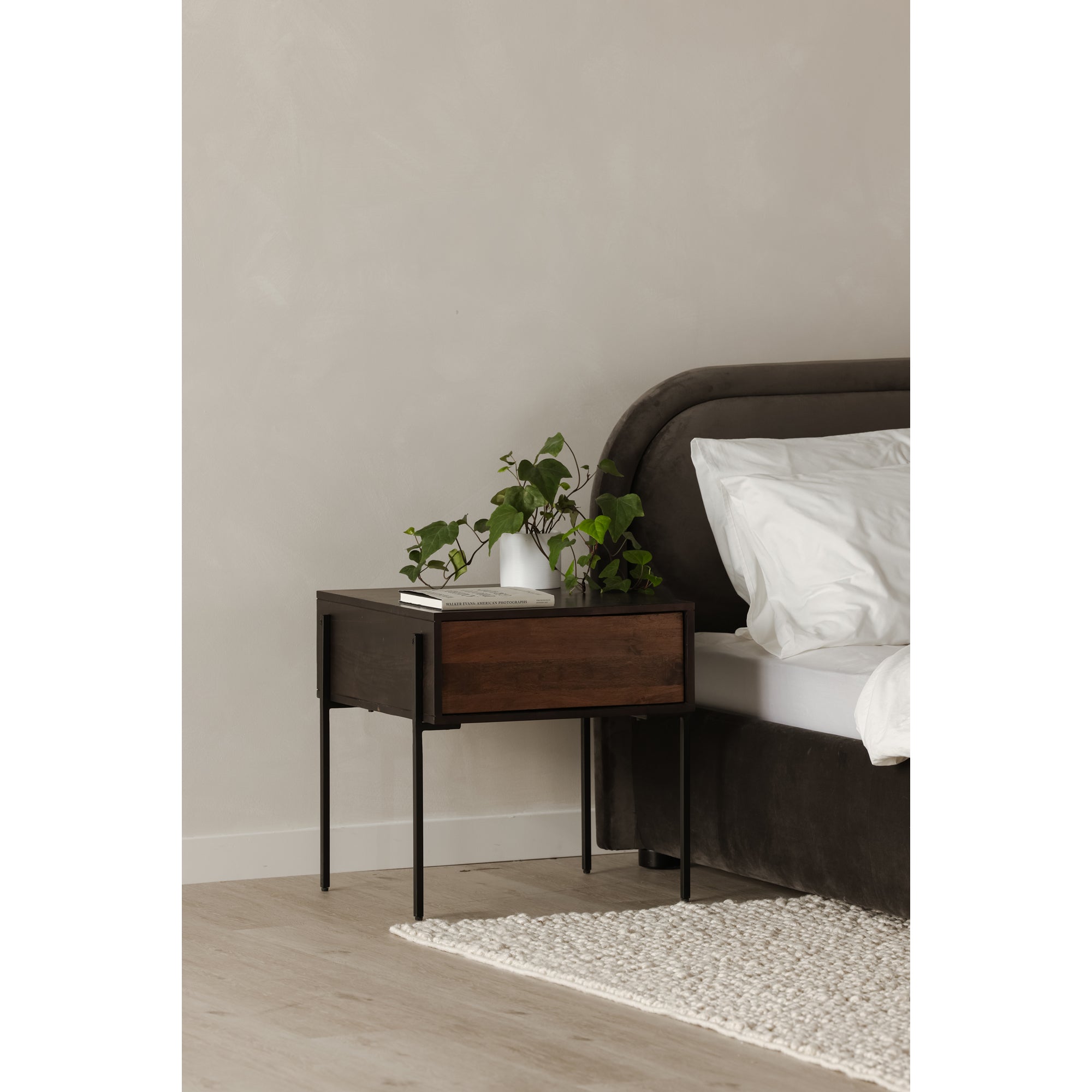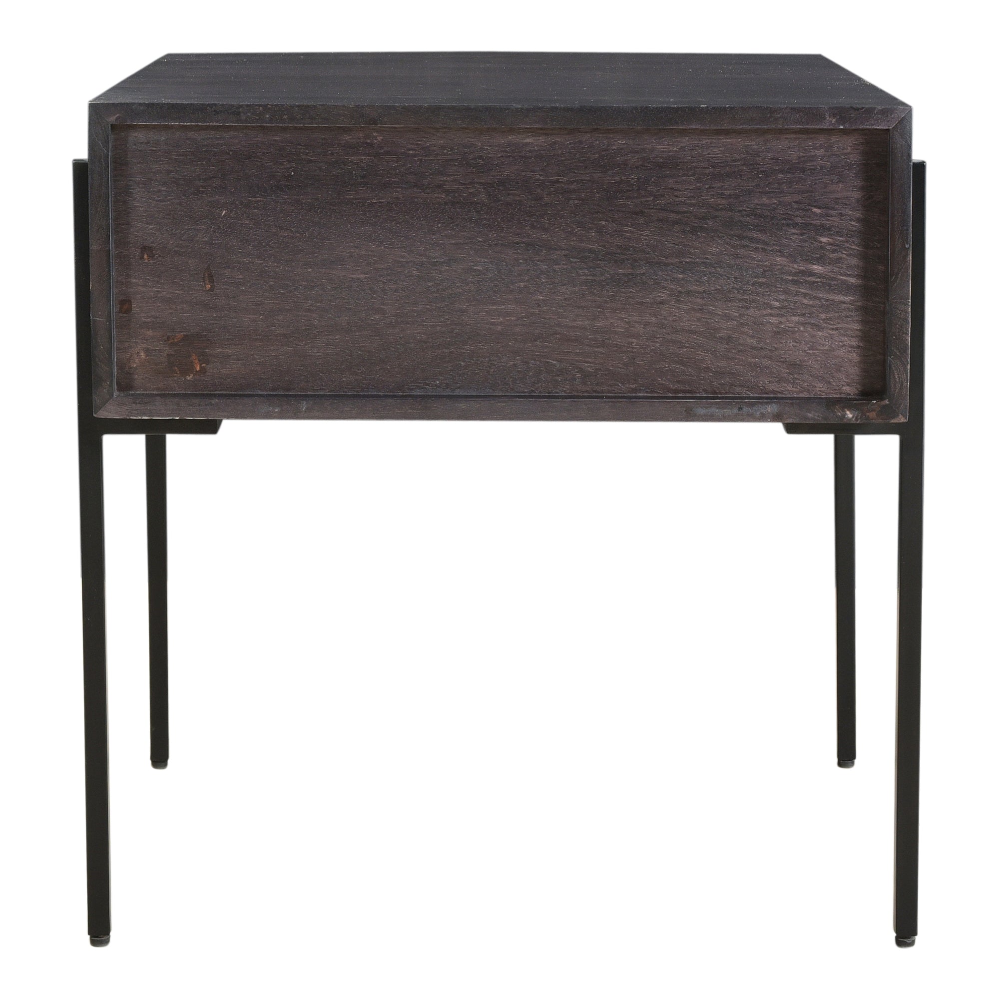 George, Side Table Solid Mango Wood, Sleek Iron Base, Light Brown
