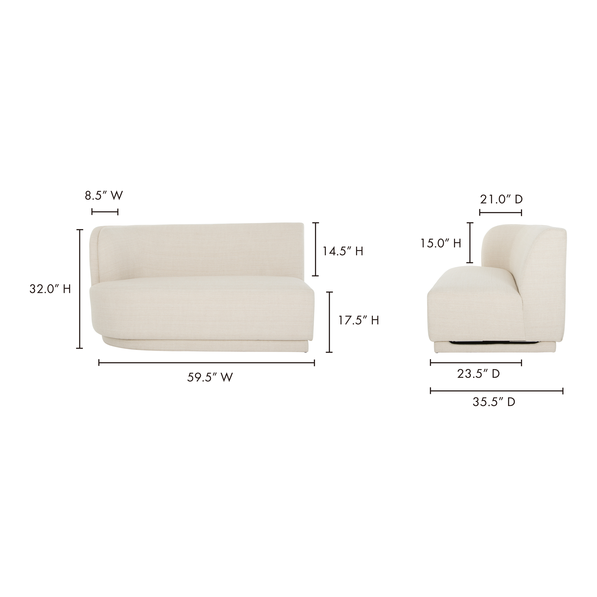 Grant Modular Sofa, 2-Seater, FSC Certified Frame, Cream White Upholstery, Left-Facing
