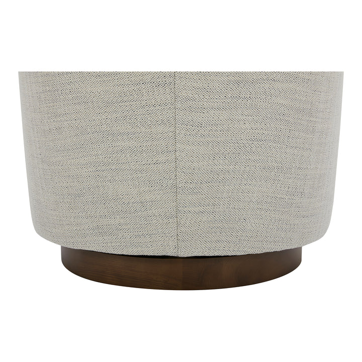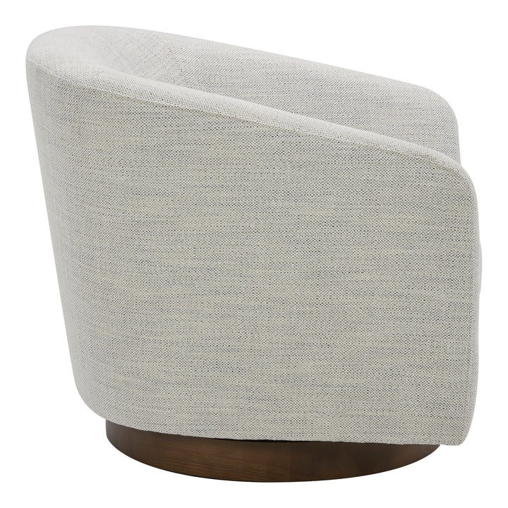 The NADAAL STUDIOS Grayson Accent Chair brings contemporary design and modern functionality to your living space. Upholstered in 85% polyester and 15% acrylic, this chair offers a soft-to-the-touch feel and easy-to-clean maintenance. Its solid dark brown wooden base ensures stability and durability, while the 360° swivel functionality adds a convenient touch. The Grayson chair's floating base design and splashed white upholstery create a calm and serene atmosphere, making it a perfect addition to any room.