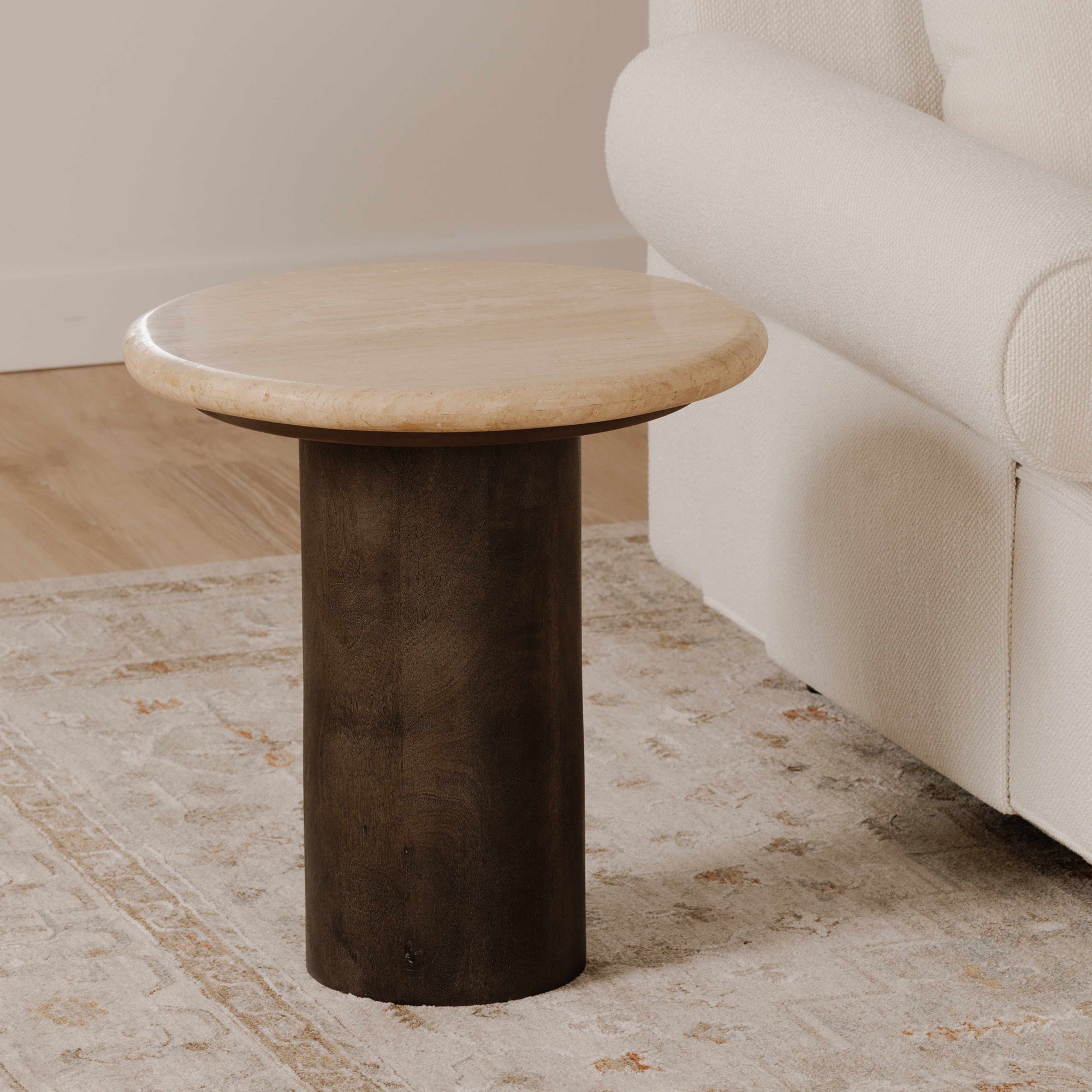 Harper, Side Table Turkish Beige Travertine Top, Mango Wood Legs, Beige