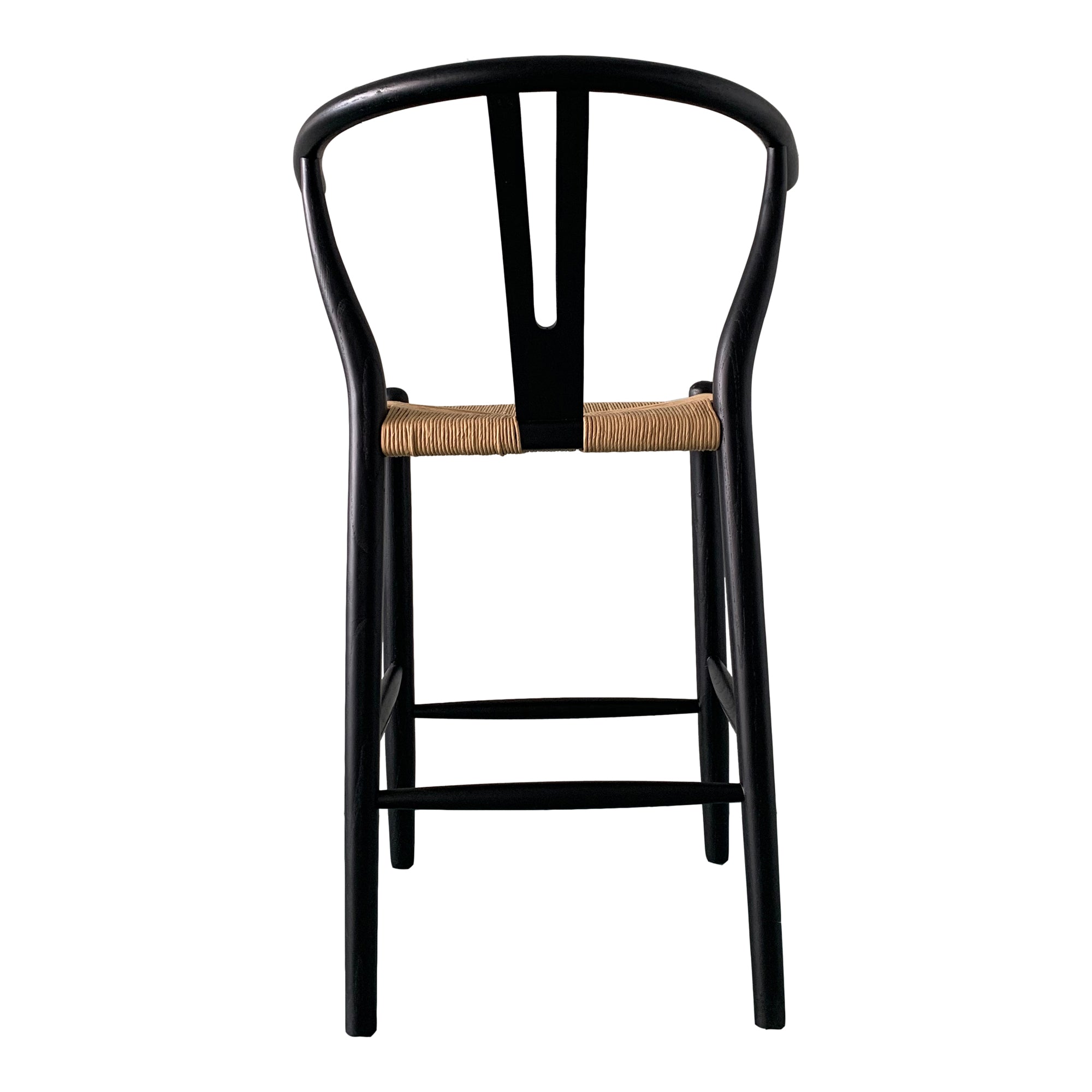 Hayden, Counter Stool Solid Elm Frame with Woven Fibre Seat, Black and Natural