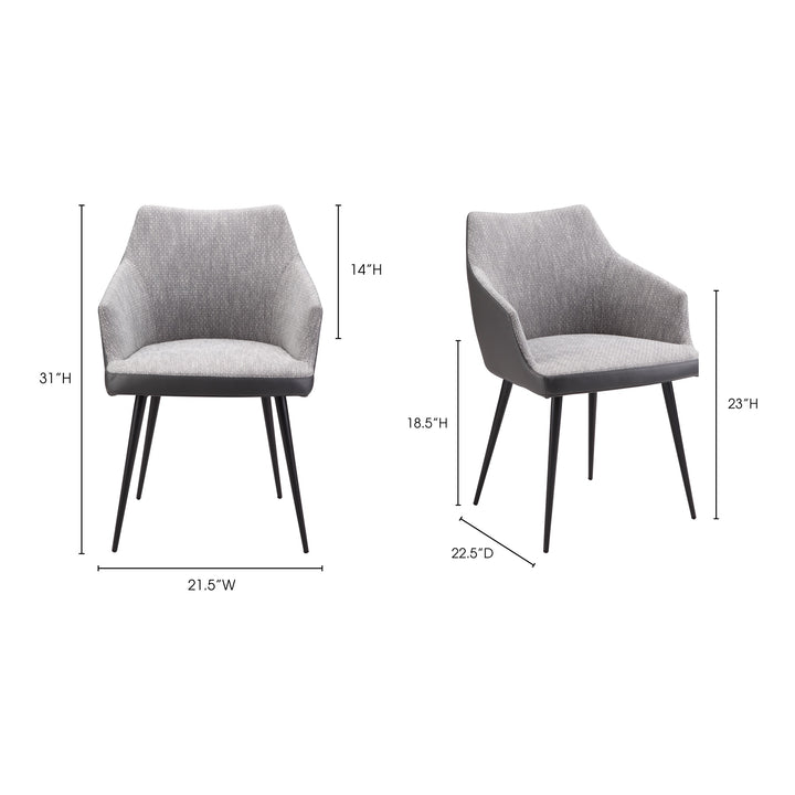 Introducing the Hunter Dining Chair from NADAAL STUDIOS, that bridges the gap between contemporary design and functional elegance. This chair is a testament to our dedication to crafting furniture that resonates with the modern lifestyle, featuring a sleek, molded seat adorned in high-performing grey polyester upholstery. Its slim, tapered metal legs not only provide a strong foundation but also add a touch of minimalist elegance to your dining area. The high-quality foam padding offers a comfortable embrace, making every meal a moment to look forward to. Requiring minimal assembly, the Hunter is designed for ease without compromising on style or quality. Its easy-to-clean surface ensures that it remains a cherished part of your home for years to come. Embrace the Hunter Dining Chair, and let it inspire you to create a dining space that reflects the sophistication and dynamism of contemporary living.