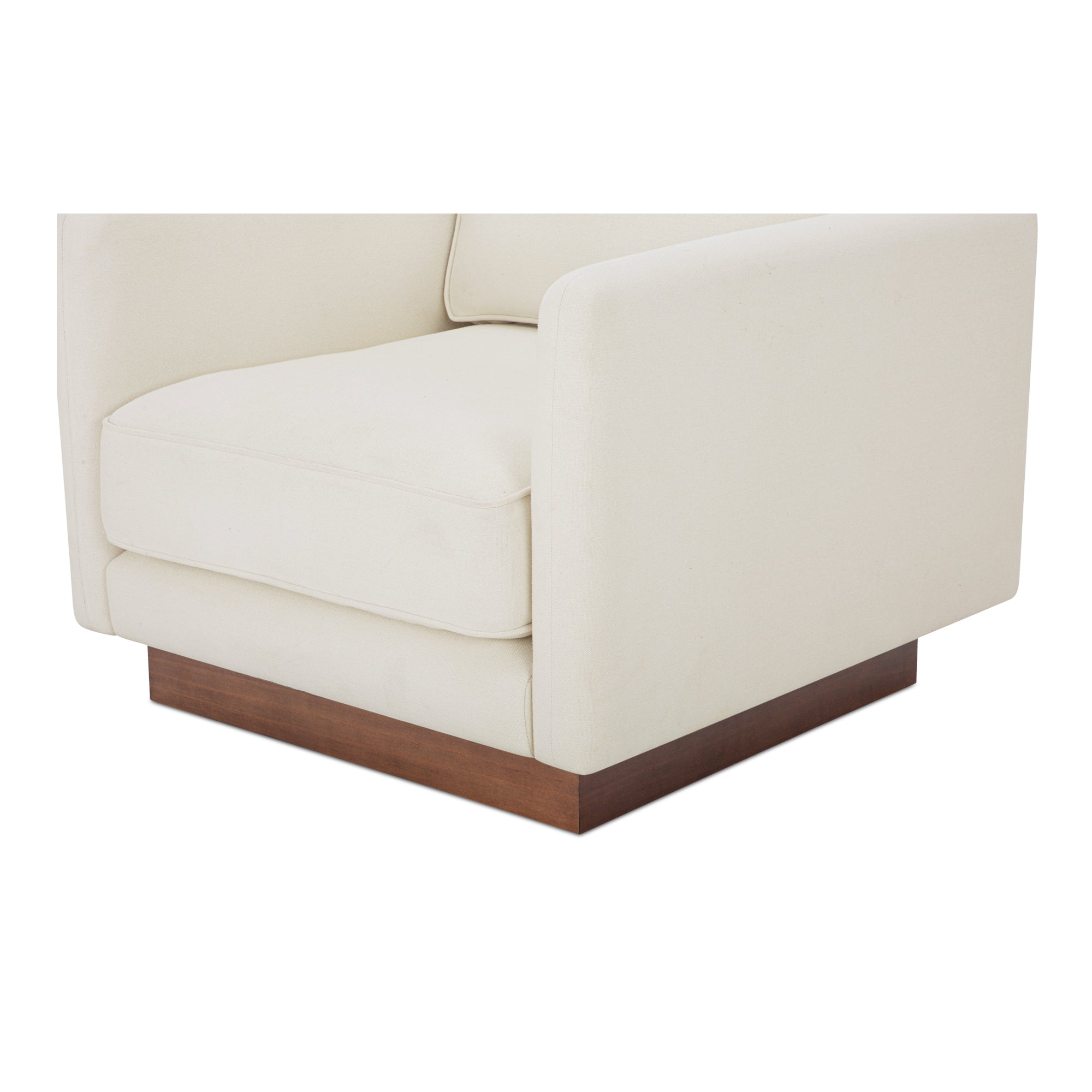 Indigo Accent Chair, Oversized Lounge Seat with Walnut Tone Veneer Plinth Base, Green Guard-Certified Polyester Upholstery, White