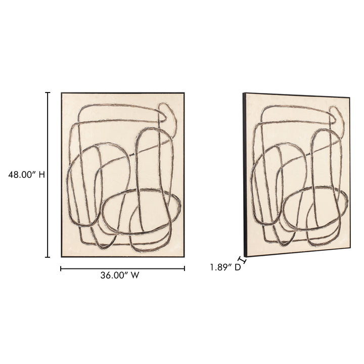 The NADAAL STUDIOS Isabeau Framed Painting is a masterful fusion of artistic innovation and timeless design. Featuring an intricate looping line ingeniously drawn into the textured acrylic paint, this artwork creates a captivating sense of depth that adds dimension to any wall. Framed with solid pine, this multicolor painting is designed to complement a variety of interior styles while being both durable and elegant. With included hanging hardware, this piece offers effortless installation, making it a versatile addition to your home or office.