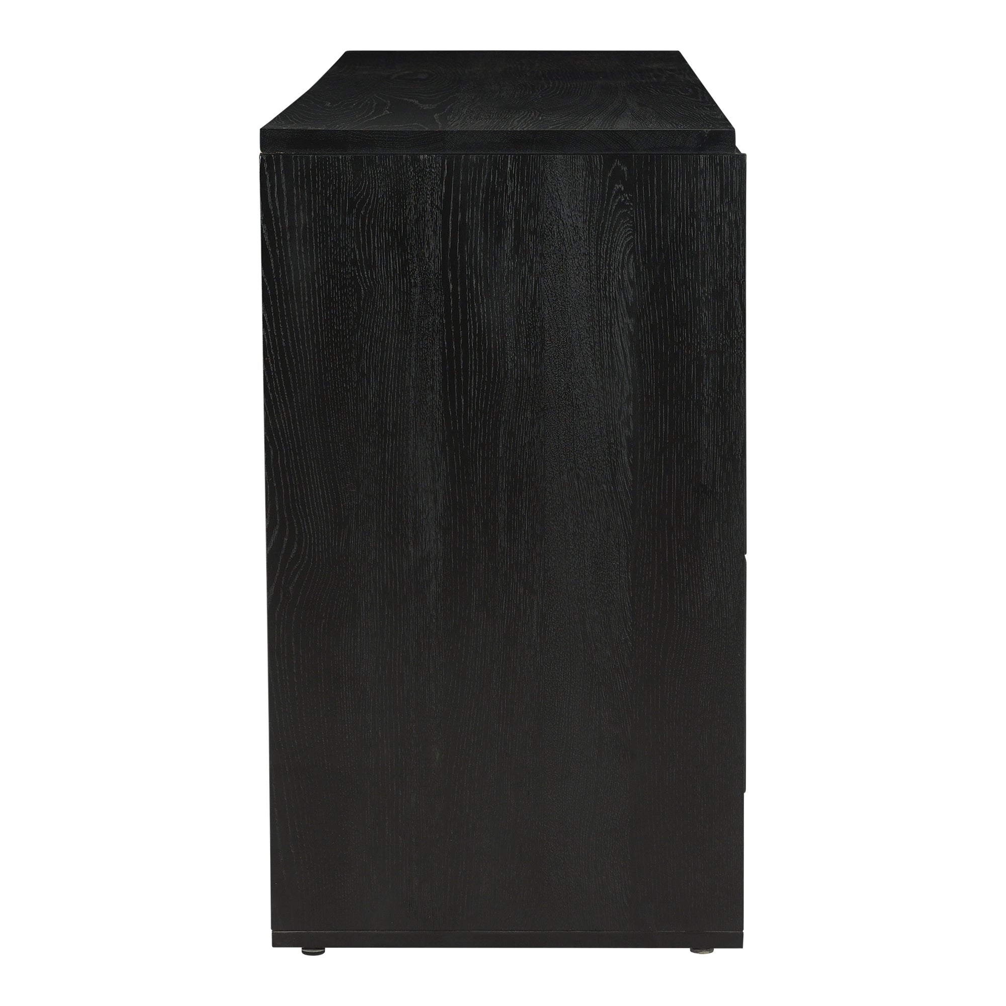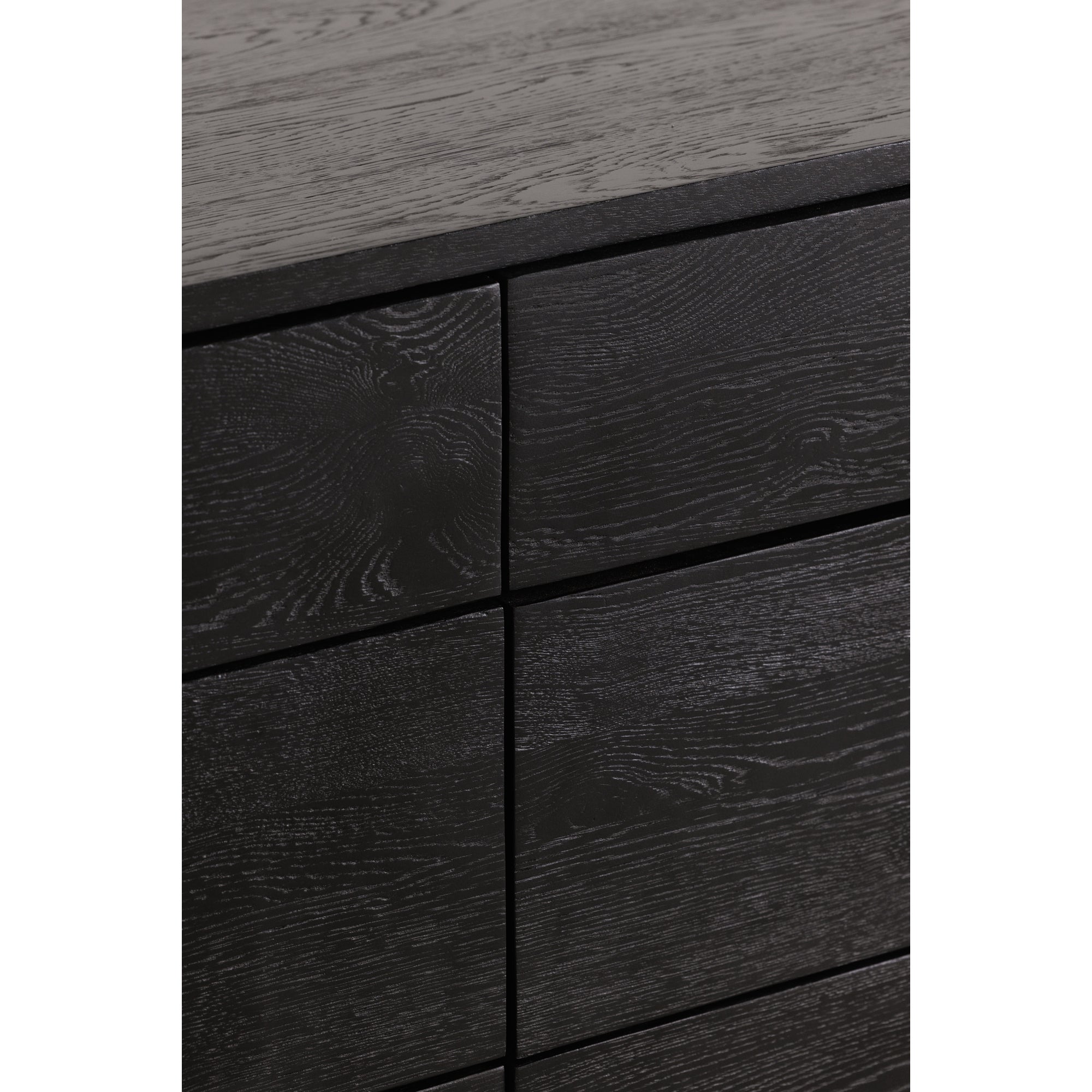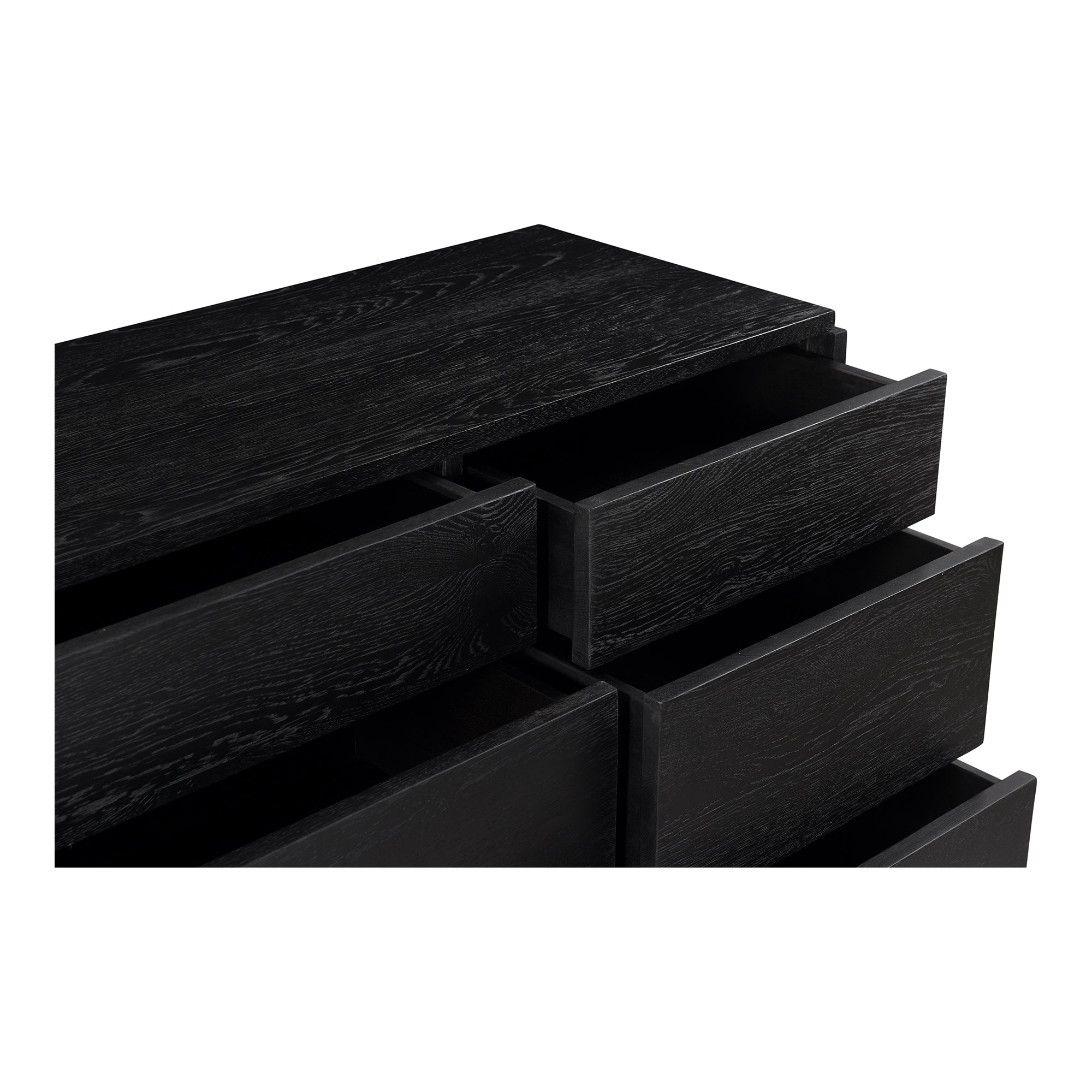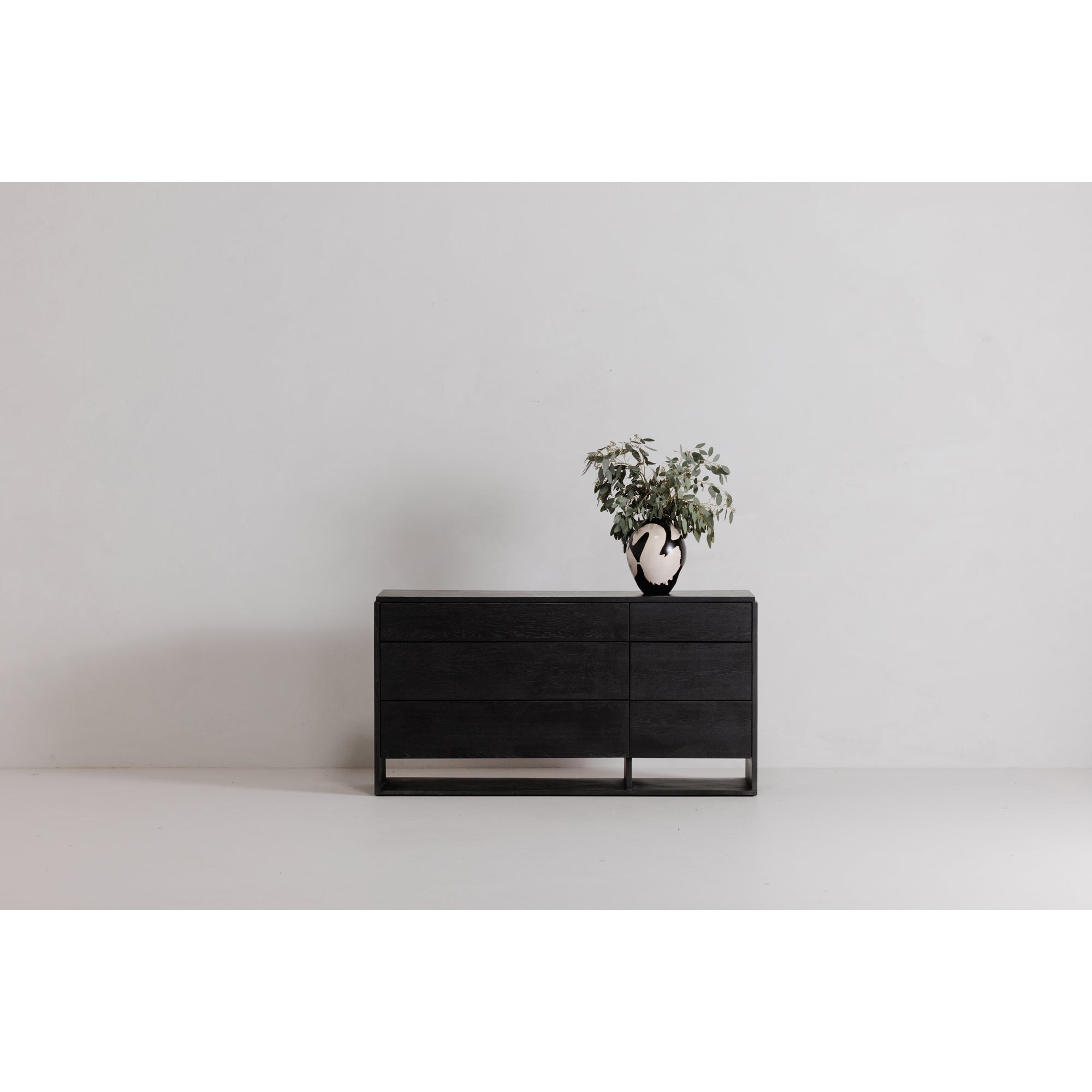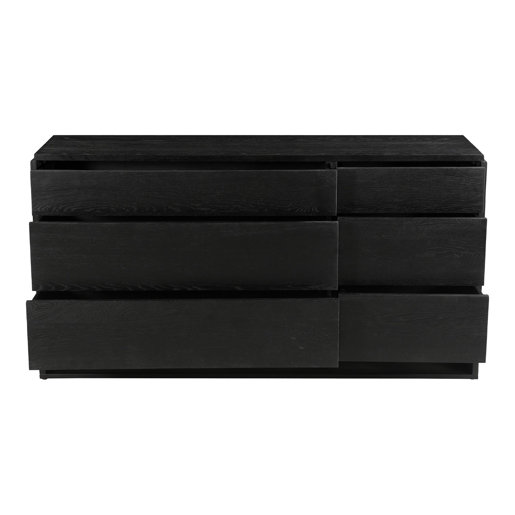 Introduce bold elegance to your home with the Isidore Dresser from NADAAL STUDIOS. This contemporary dresser is constructed from a solid oak frame with a matte black finish, featuring solid oak top, sides, and drawer fronts. The Isidore Dresser includes six spacious mango wood drawers, providing ample storage for your essentials. Each piece is unique, showcasing the natural variations in wood character, grains, and knots. Supported by a sleek iron sheet base, the Isidore Dresser blends functionality with sophisticated design. Its durable construction ensures long-lasting use, making it a standout addition to any bedroom or living space.
