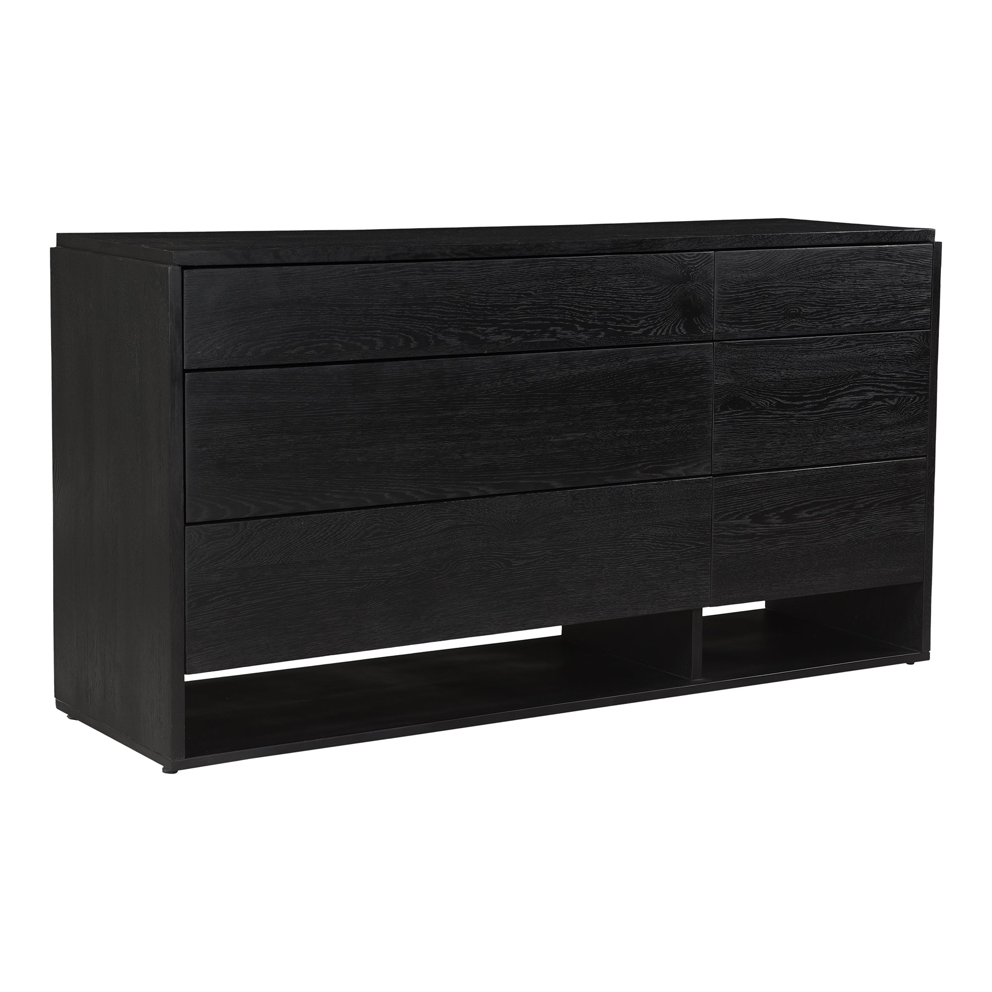 Isidore, Dresser, Contemporary Solid Oak and Mango Wood with Matte Black Iron Base, 6 Drawers, Black