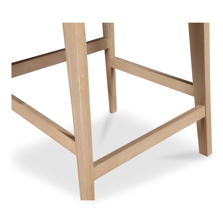 Ismara Counter Stool, Vegan Leather Upholstery, Solid Oak Frame, Metal Reinforcement, Seat Height 26", White
