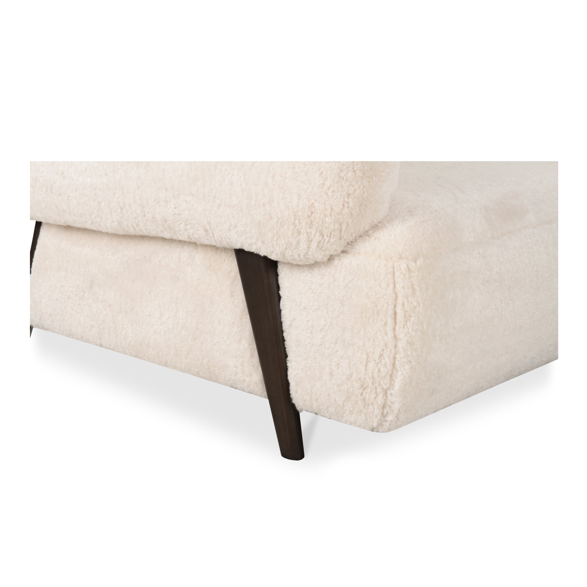 Ismene Lounge Chair, Oversized Seat, Faux Fur Upholstery, Solid Ash Wood Legs, Cream White