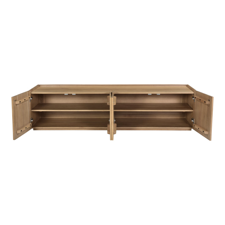 Jasper Media Unit, Solid Oak, Natural Finish, Magnetic Cabinet Doors, Oak Veneer Back Panel