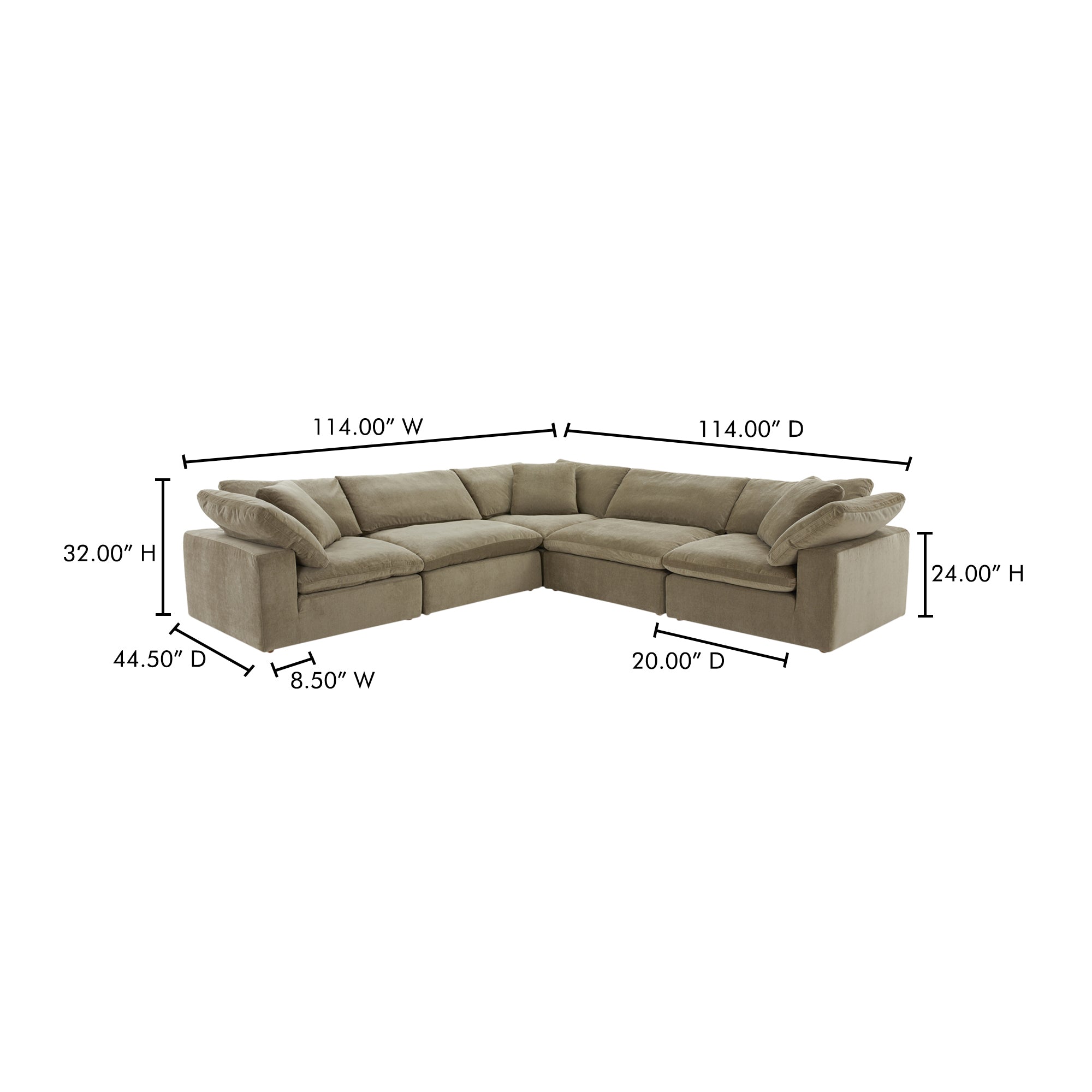 Jeremy Classic L, Scandinavian Modular Sectional, Performance Technology Fabric Upholstery, 5 Seater, Desert Sage