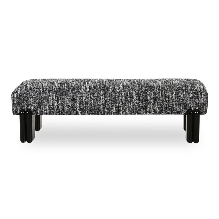 Jessamine Bench, Textured Bouclé Upholstery, High Gloss Iron Legs, Seat Width 56 Inches, Black