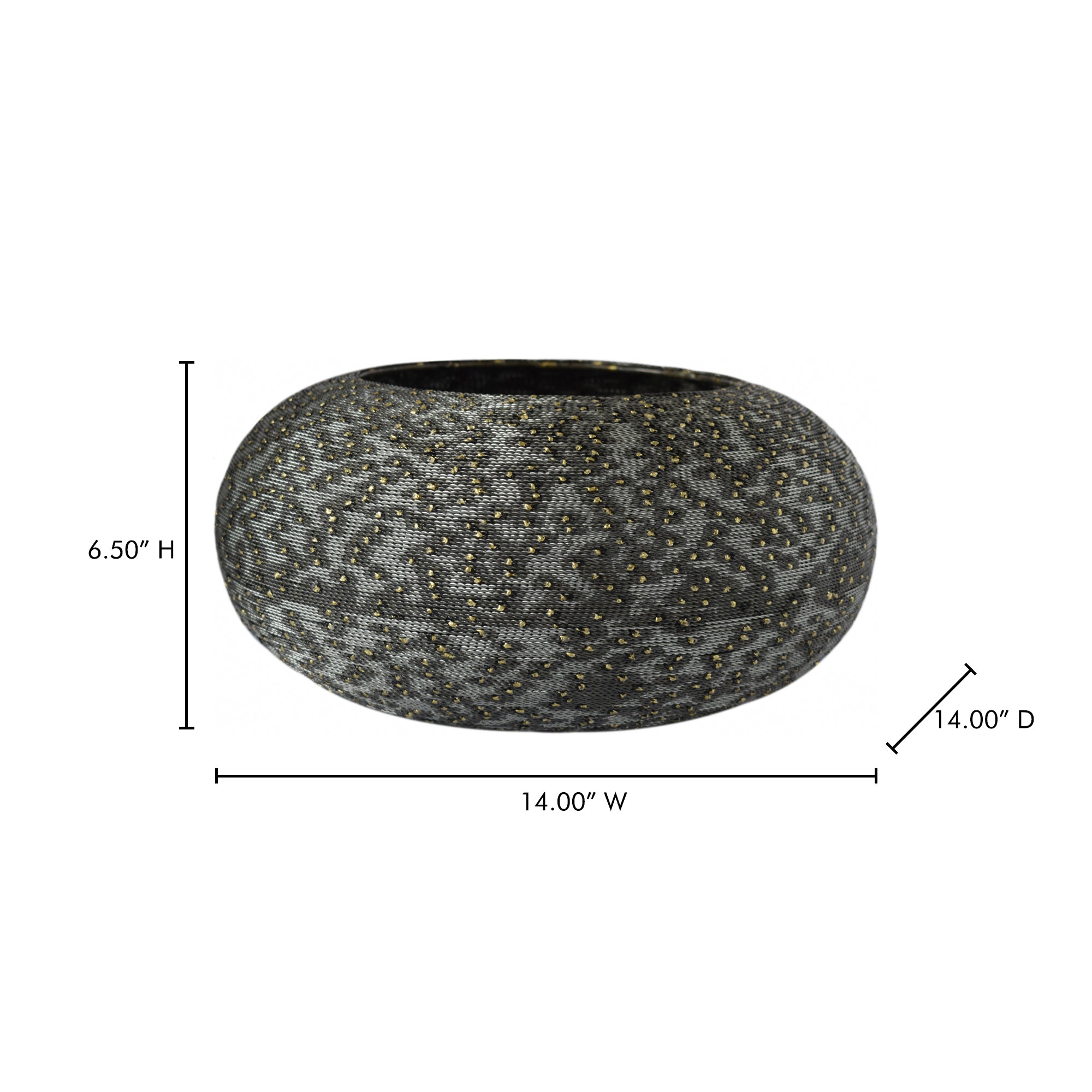 The Jonah Beaded Design Iron Bowl from NADAAL STUDIOS combines functionality with stylish design. Crafted from high-quality iron with a dark gunmetal finish, this bowl features an intricate beaded design that adds a touch of contemporary elegance to any room. Its ample storage capacity makes it perfect for holding trinkets, flowers, fruit, or any other items you wish to display. The Jonah bowl requires no assembly, allowing you to enjoy its decorative and practical benefits right out of the box. Enhance your home décor with this versatile and attractive accent piece, embodying NADAAL STUDIOS' commitment to modern functionality and timeless design. Whether used as a centerpiece or a functional storage solution, the Jonah bowl is sure to impress with its unique style and practicality.