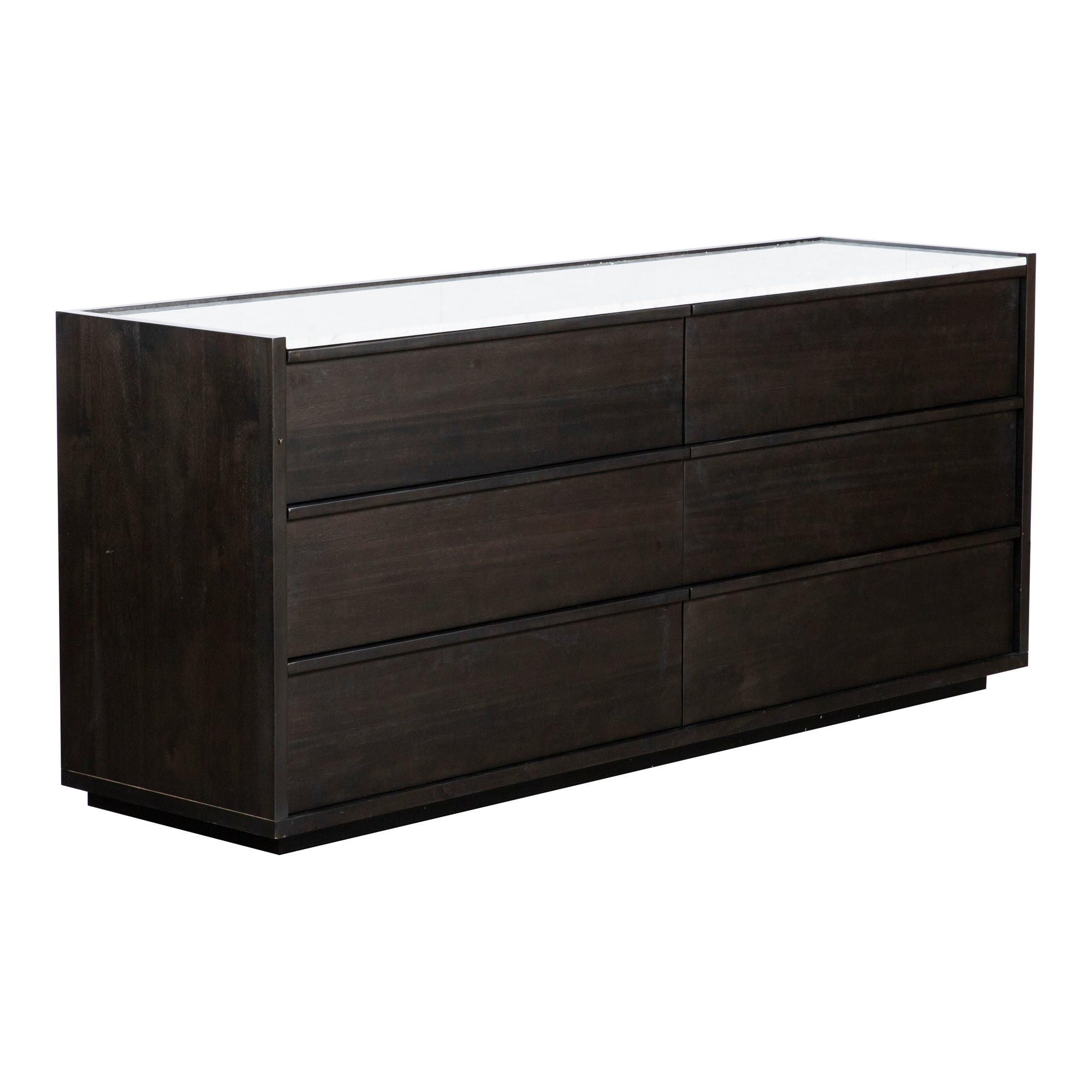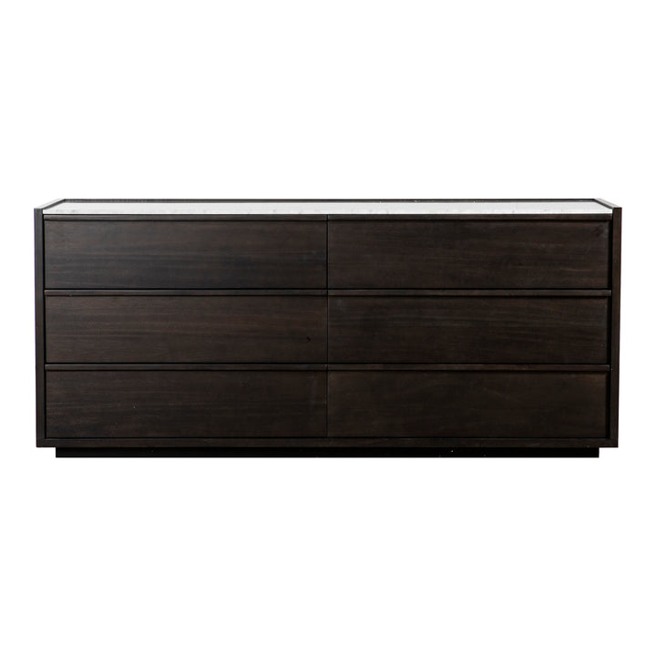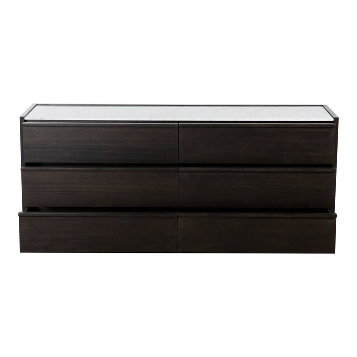 Jordan, Dresser, Contemporary Acacia Veneer with White Marble Top and Wooden Drawer-pulls, 6 Drawers, Dark Grey