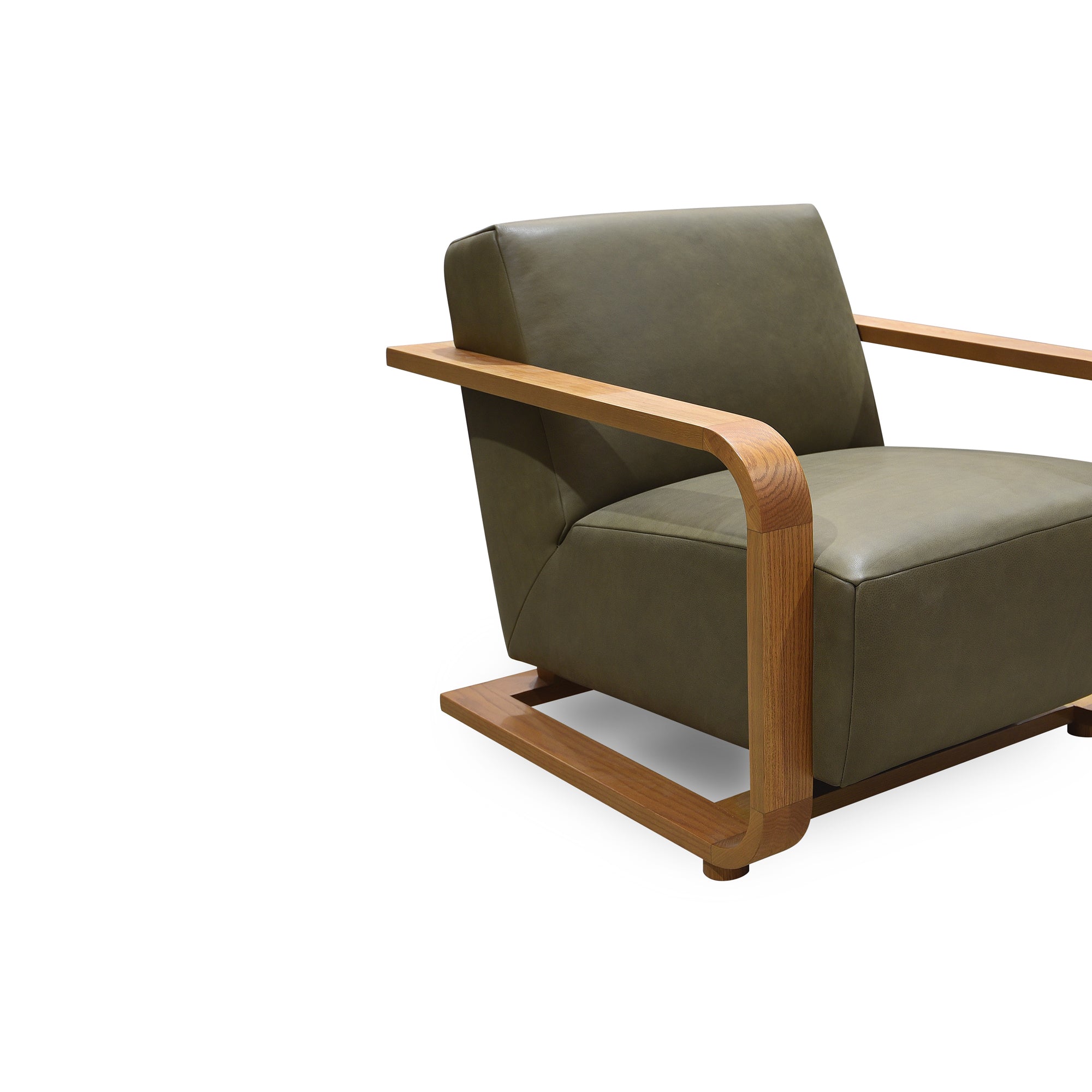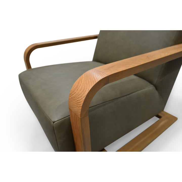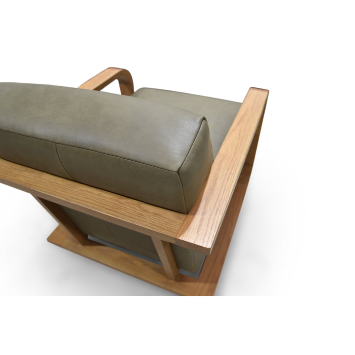 Joseph Occasional Chair, Top Grain Leather Cushion Back with Solid Oak Frame, Olive