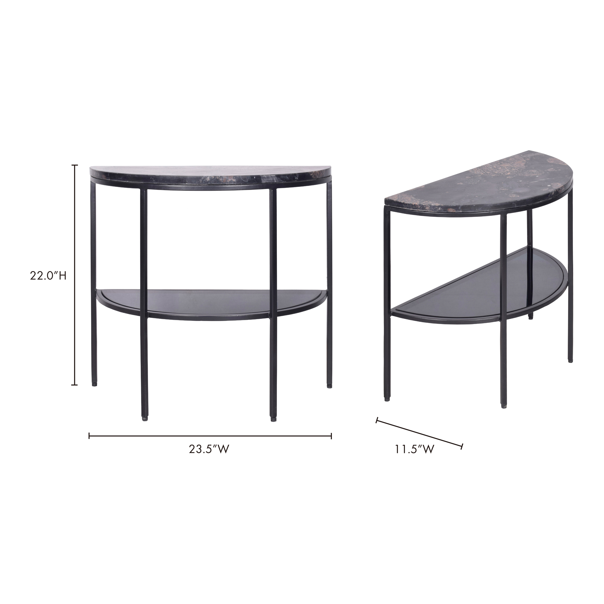 Discover the perfect blend of elegance and functionality with the Jovie Accent Table from NADAAL STUDIOS. The black powder-coated demi-lune iron frame supports a stunning multitone marble top, complemented by a grey smoked glass lower shelf. This side table offers elegant open storage and underscores multifunctional appeal, making it an ideal addition to any contemporary or art deco-inspired space. Some assembly is required, but the end result is a piece that embodies modern functionality and timeless design. Enhance your home with this sophisticated accent table, crafted to last and designed to impress.