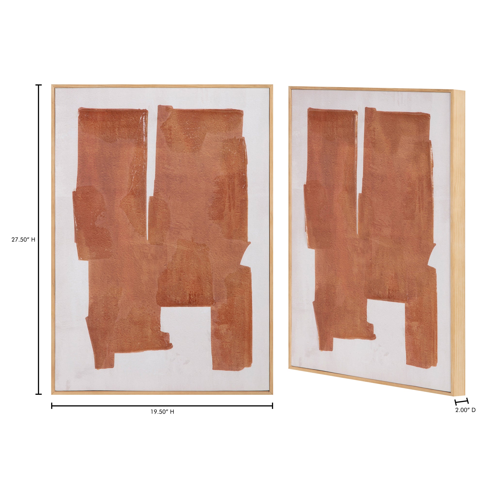 The Kayci painting by NADAAL STUDIOS is a captivating piece of art that brings warmth and serenity to any room. This stunning design is meticulously painted on high-quality canvas, which is then stretched over durable pine wood. The painting is beautifully framed in a brown pine wood frame, enhancing its earthy appeal. The multicolor palette, featuring complementing pink and orange hues, evokes an earthy warmth that creates a serene yet striking composition. With no assembly required, the Kayci painting is ready to adorn your walls and elevate your home decor with its timeless elegance and vibrant colors.
