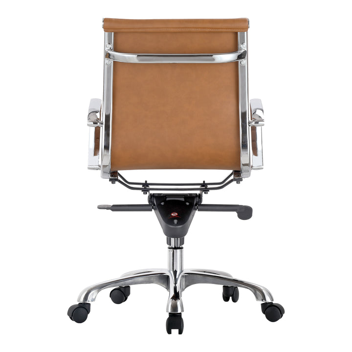 Kayla, Low-Back Office Chair, Vegan Leather Upholstery, Chromed Steel Frame, Tan