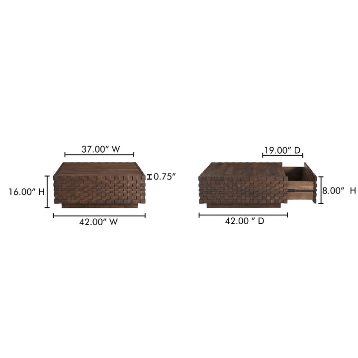 Keaton Coffee Table, Square Acacia Wood, Acacia Veneer, Brown Finish