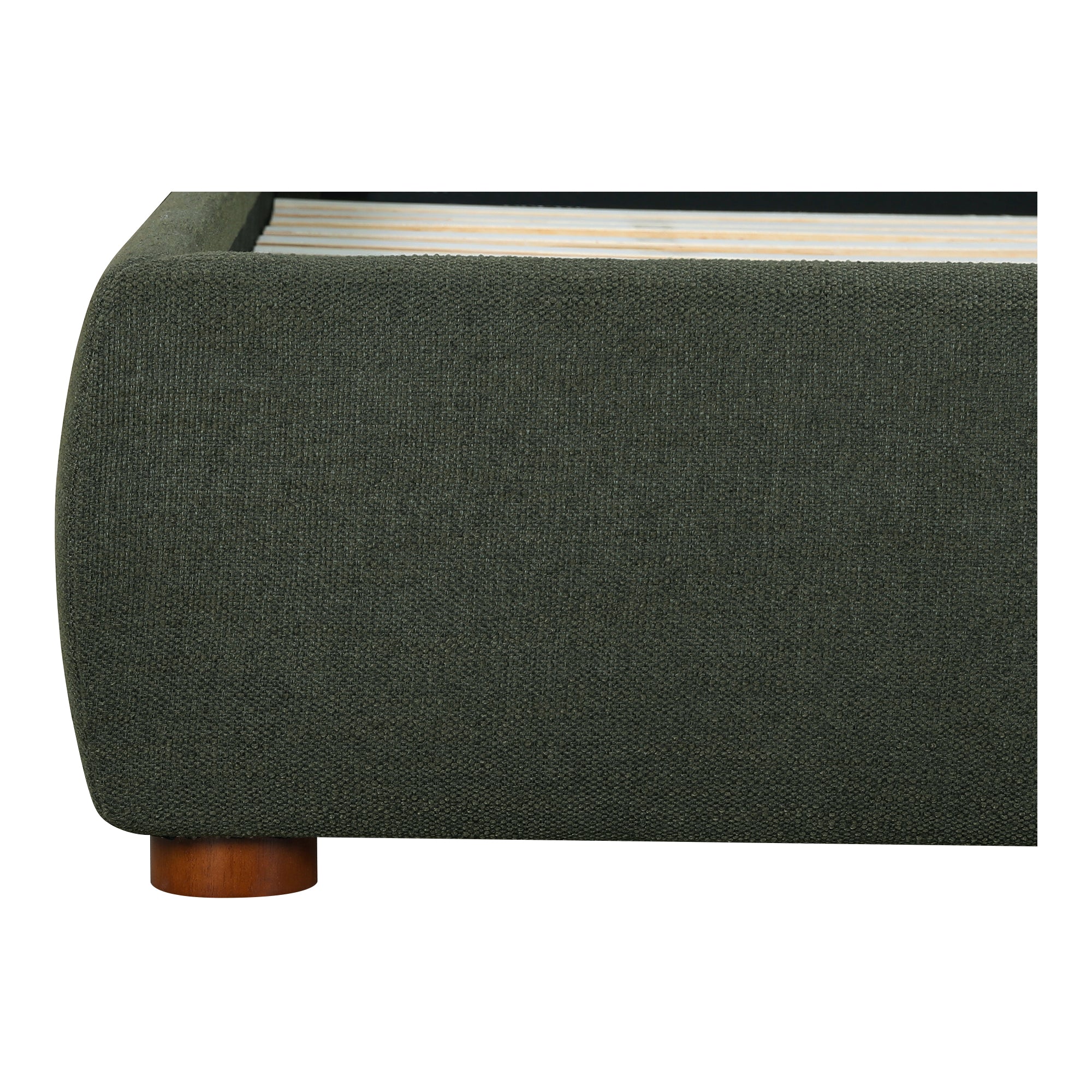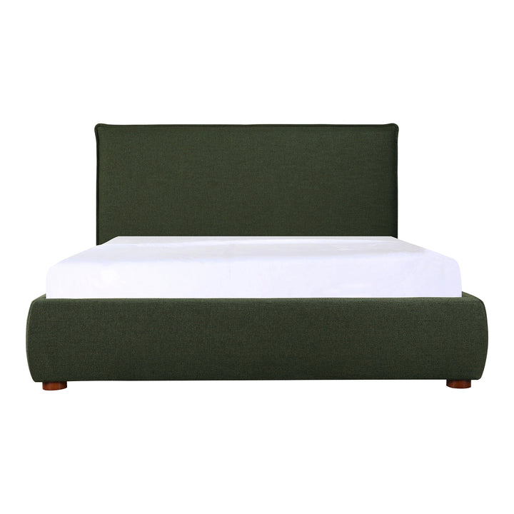 Keaton King Bed, Solid Pine Frame with Soft Linen-Blend Upholstery and Foam Cushioning, Deep Forest