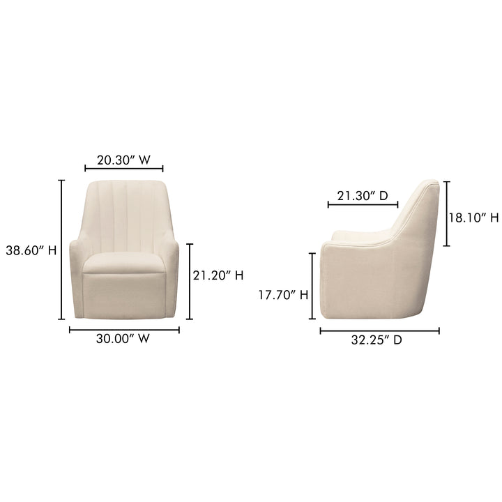 Linden Swivel Chair, Soft Performance Fabric, 360° Swivel, High Back, White