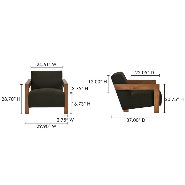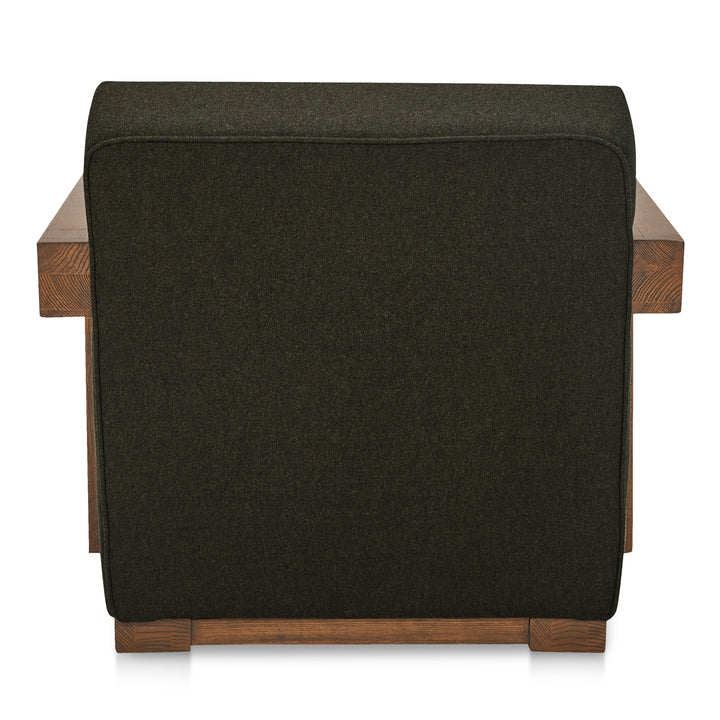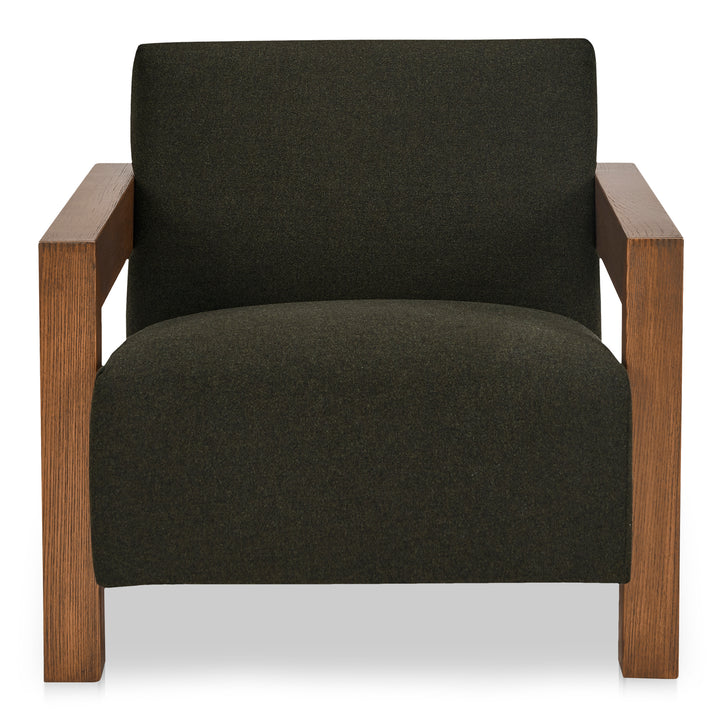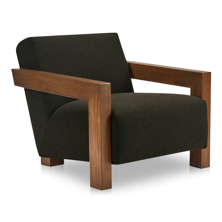 Lorien Lounge Chair, Herringbone Wool Blend Upholstery, Solid Oak Frame, Olive Green