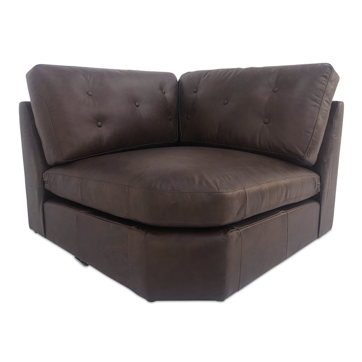 Lorienne Corner Chair, Top-Grain Leather, Tufted Back, Sloped Arms, Semi-Matte Finish, Espresso Brown