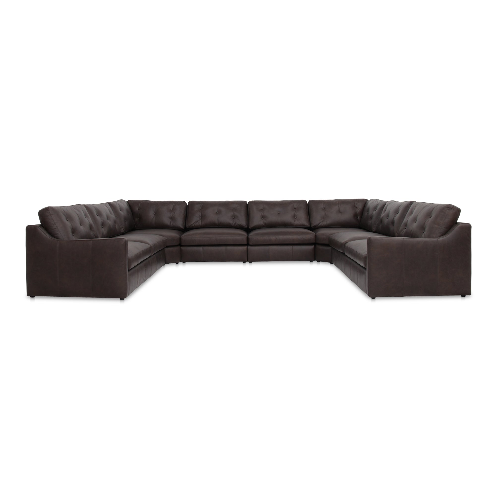 Lorienne U Shaped Modular Sectional, Sloped Arms, Top-Grain Leather, Tufted Back, Semi-Matte Finish, Espresso Brown
