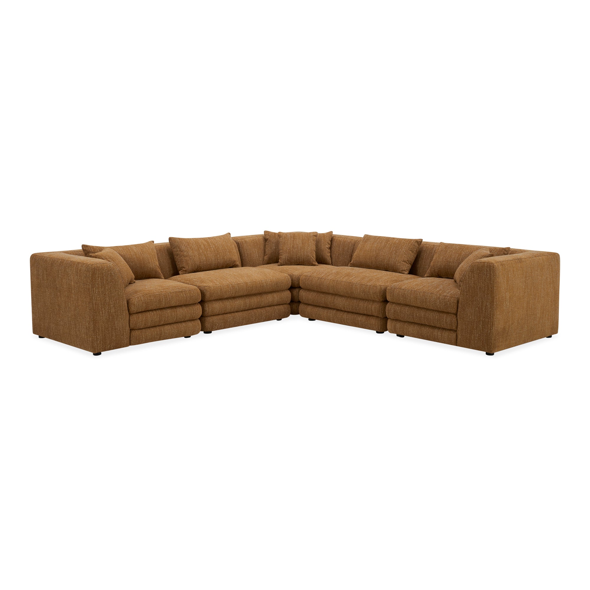 Lucien Classic L Modular Sectional, Feather-Topped Cushions, Textured Polyester Upholstery, Kiln-Dried Solid Wood Frame, Seats 5, Amber Glow