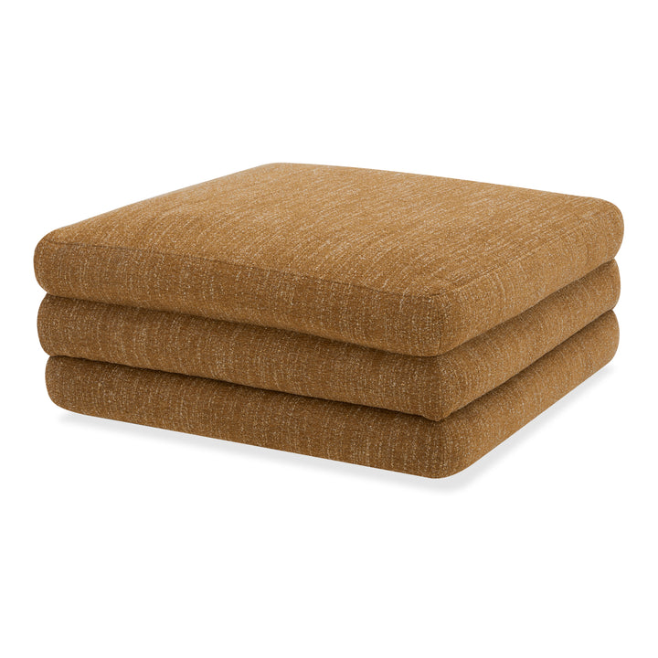 Lucien Ottoman, Feather-Topped Cushion, Textured Polyester Upholstery, Kiln-Dried Solid Wood Frame, Amber Glow