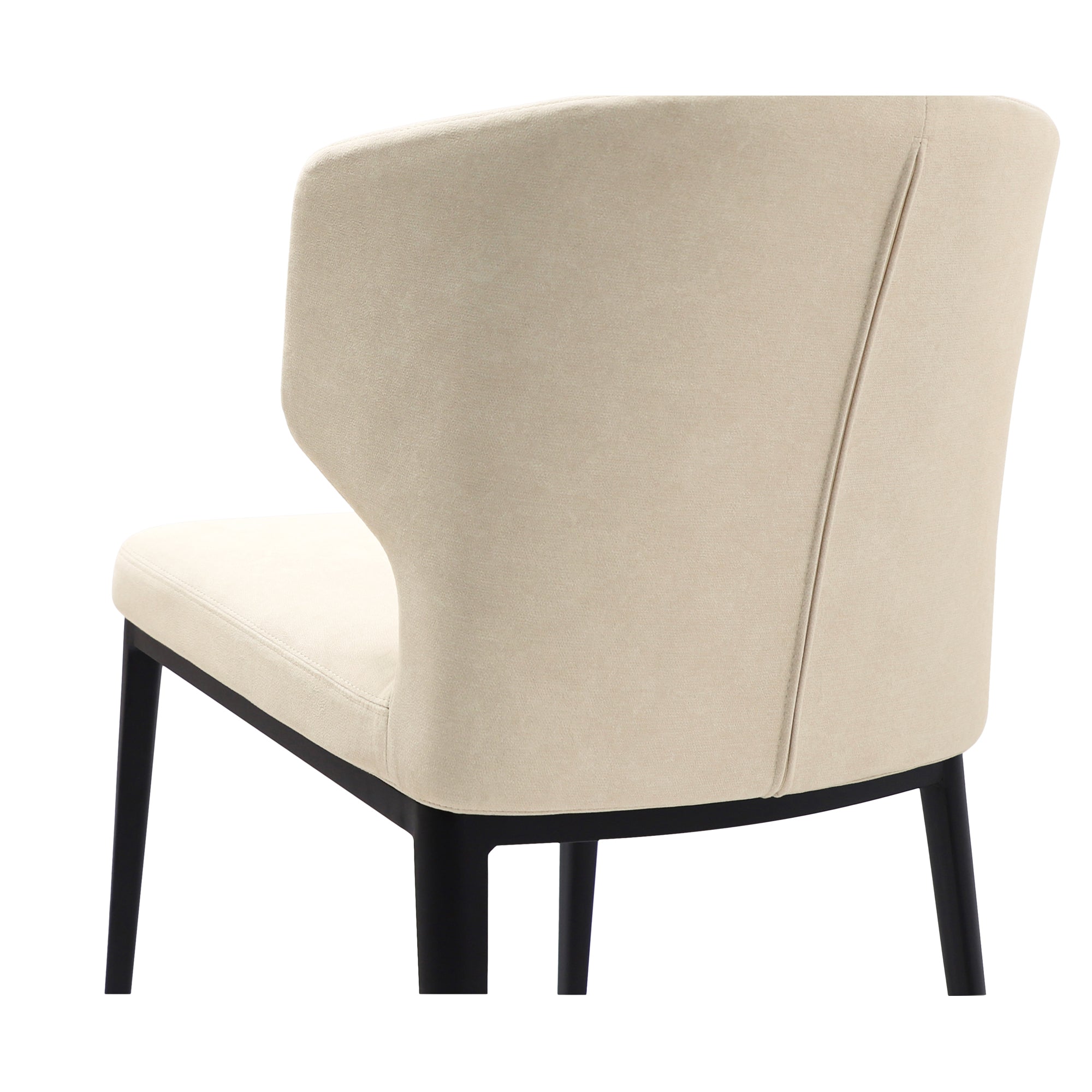 Lyra Dining Chair, Barrel-Style Back, Warm Beige Upholstery, Iron Frame - Set of 2