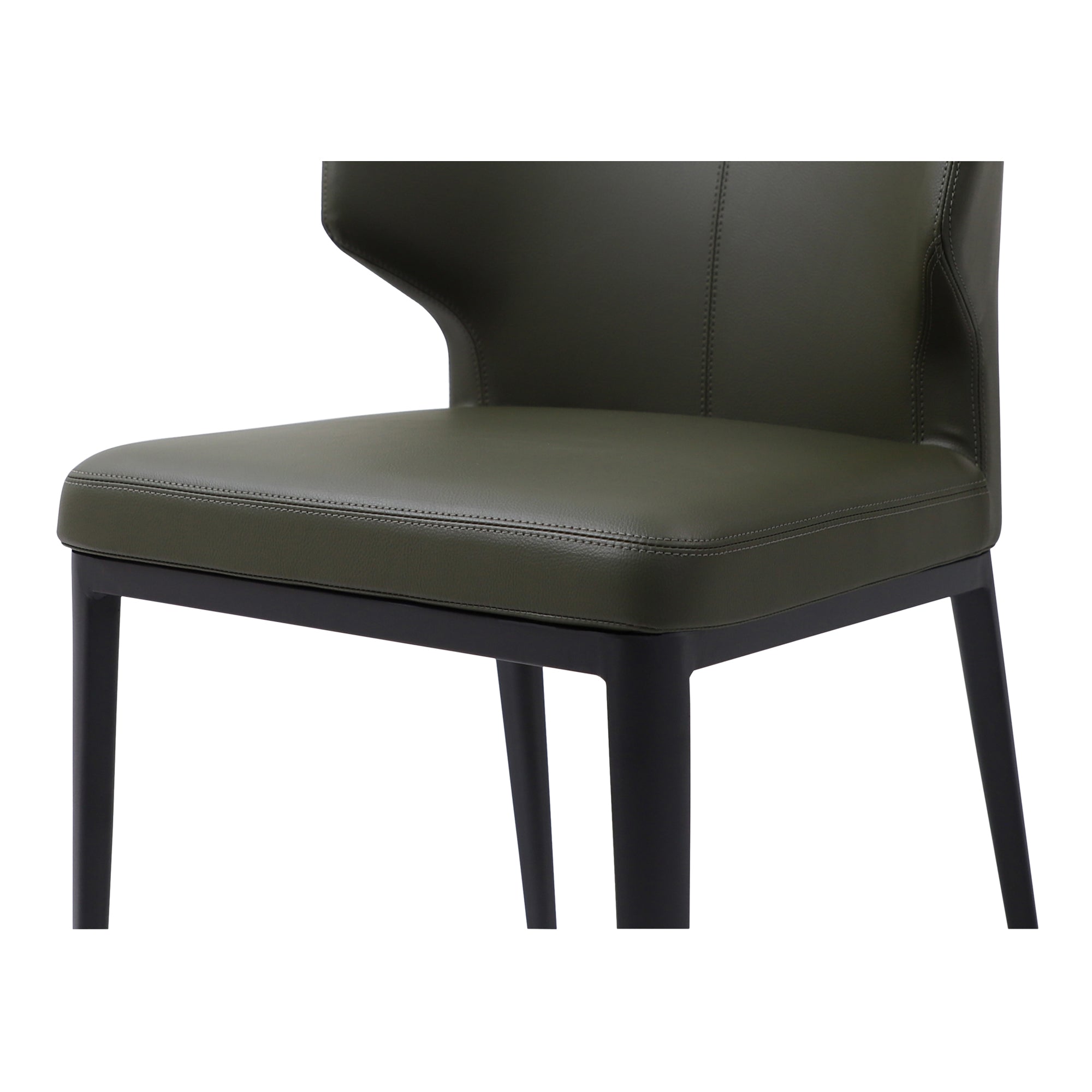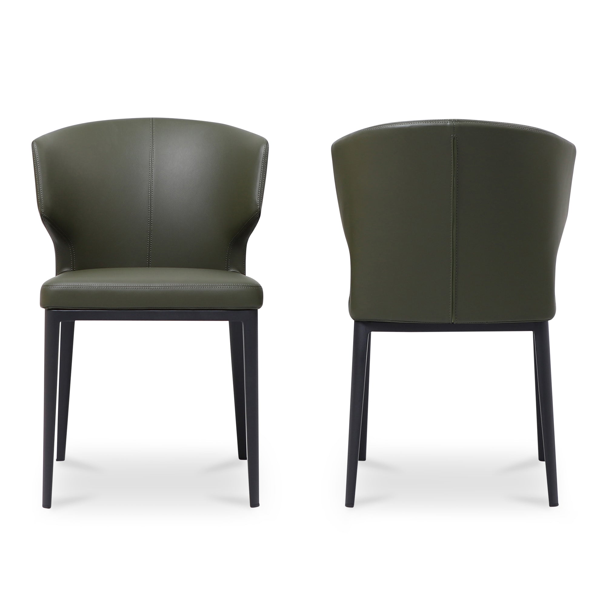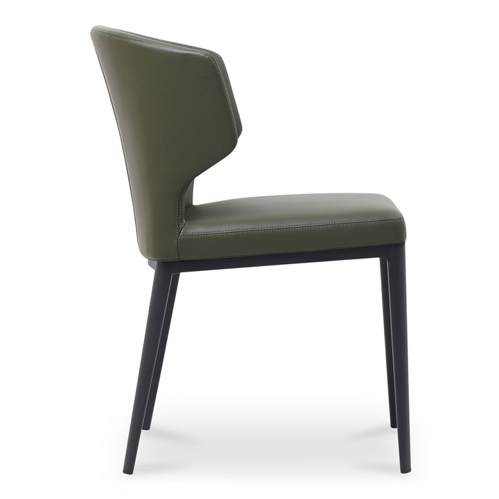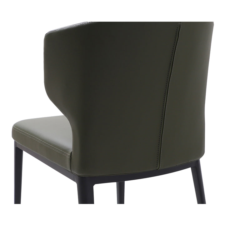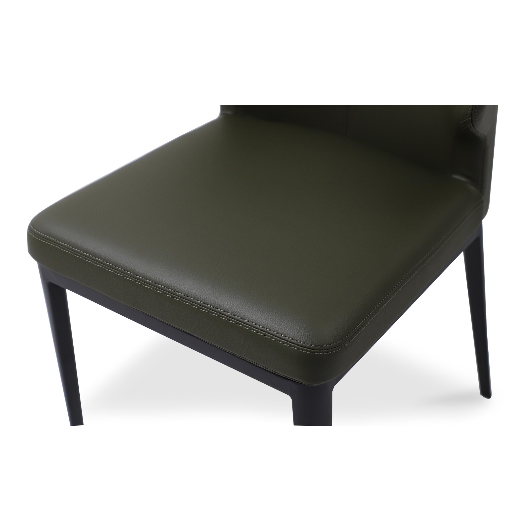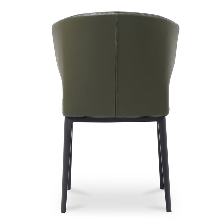 Lyra Dining Chair, Barrel-Style Vegan Leather Seat with Full Backrest, Steel Frame Dark Green