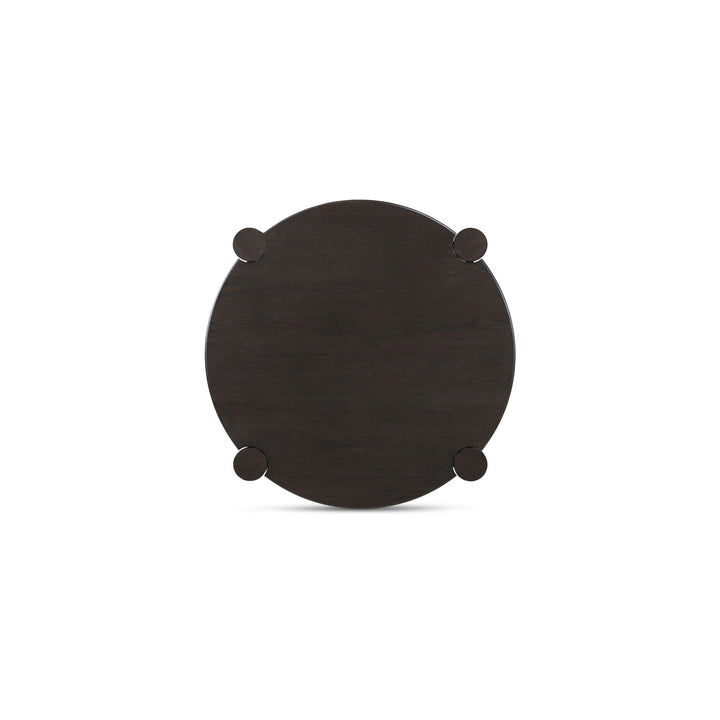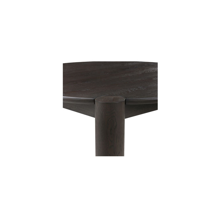 The Lysor Coffee Table blends sculptural presence with timeless craftsmanship through its round solid oak top and substantial column legs. A smooth bullnose edge softens the silhouette, while a wire-brushed dark brown finish highlights natural grain and texture. With meticulous joinery and a grounded profile, this piece serves as a versatile, enduring centerpiece for modern living spaces.