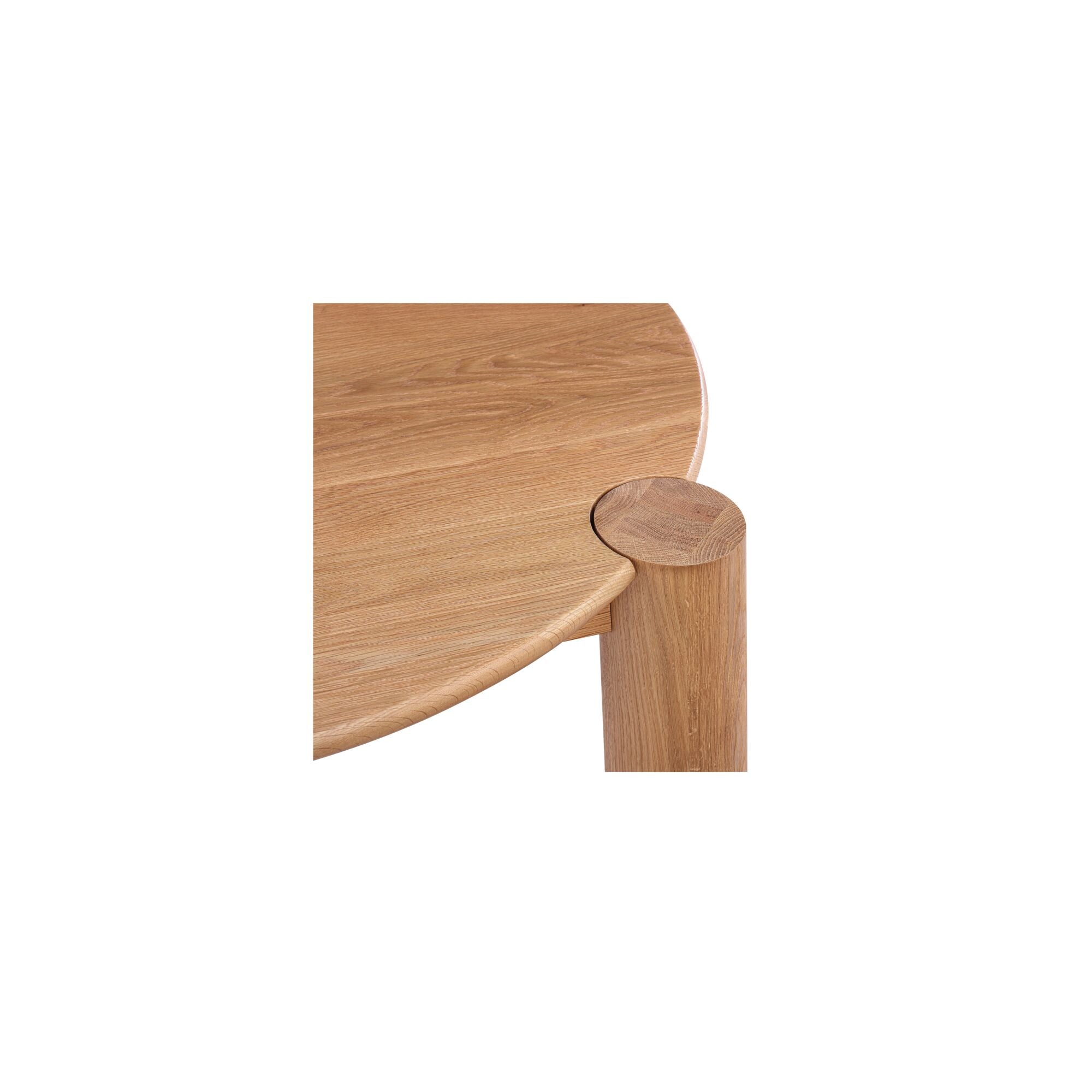 The Lysor Coffee Table offers a refined balance of modern detailing and timeless materiality with its round solid oak top and substantial column legs. A bullnose edge softens the silhouette, while the wire-brushed natural finish highlights organic wood texture. Designed with meticulous joinery, this table adapts effortlessly to evolving interiors and serves as a warm, versatile centerpiece.