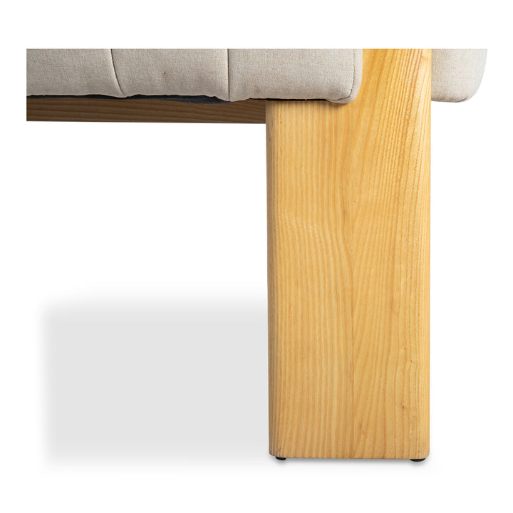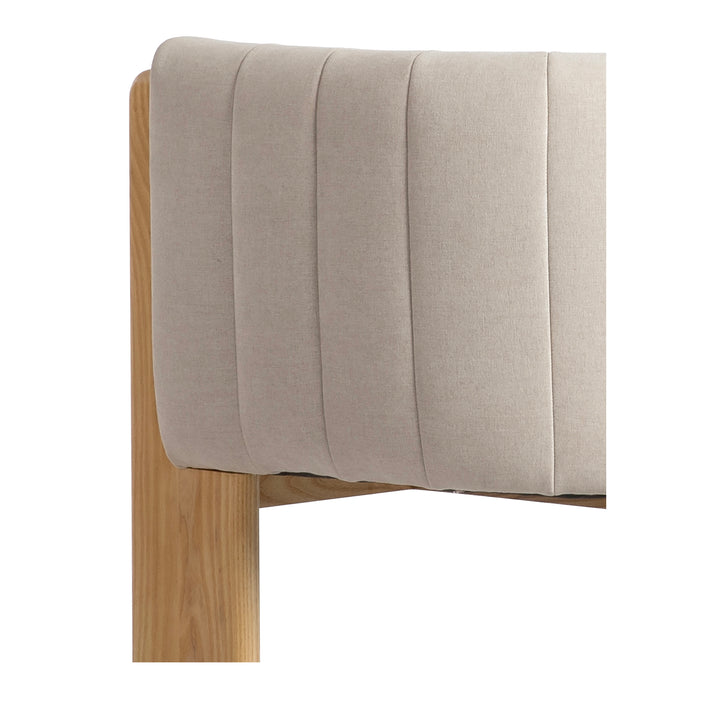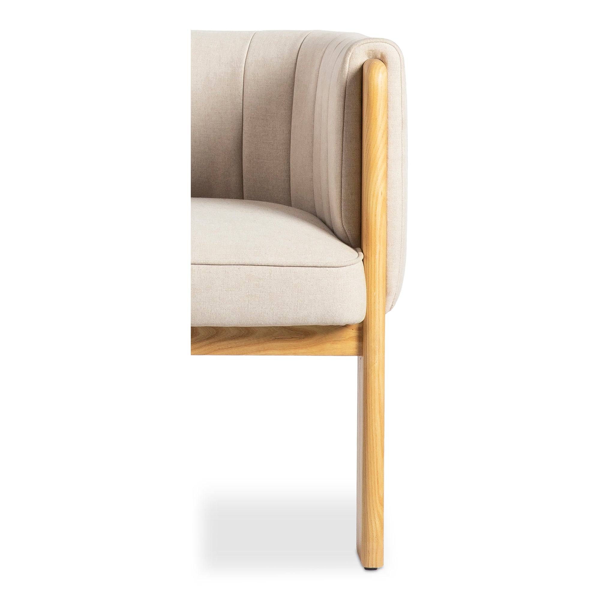 Elevate your living space with the NADAAL STUDIOS Maddox Accent Chair, a perfect blend of retro charm and modern sophistication. Inspired by 70s design, this chair features a sculptural form with fold-over arm detailing and intricate upholstery channel detailing. The studio canvas upholstery is a blend of 95% polyester and 5% nylon, offering a soft and durable seating surface. Supported by a solid ash and plywood frame with elastic webbing, this chair ensures both durability and comfort. Medium-density, high-resilience foam provides exceptional seating comfort, making it ideal for lounging. The Maddox Accent Chair in studio canvas beige adds a touch of elegance and nostalgia to any contemporary home decor.
