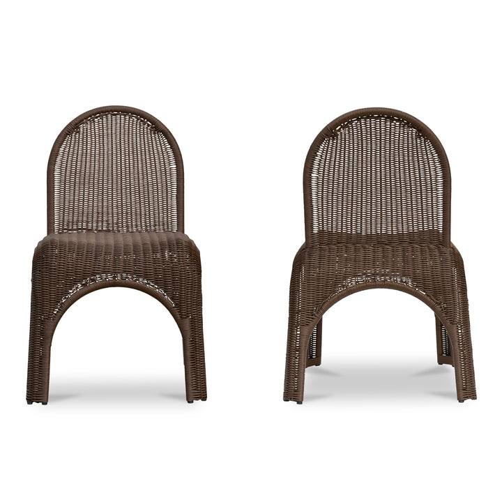 Bring a contemporary twist to classic outdoor seating with the Maireth Dining Chair by Nadaal Studios. With exaggerated curves, a rounded backrest, and a fresh interpretation of wicker, this chair feels light, airy, and grounded all at once. Crafted from durable synthetic wicker over a strong iron frame, Maireth offers both sculptural beauty and long-lasting performance for alfresco dining.